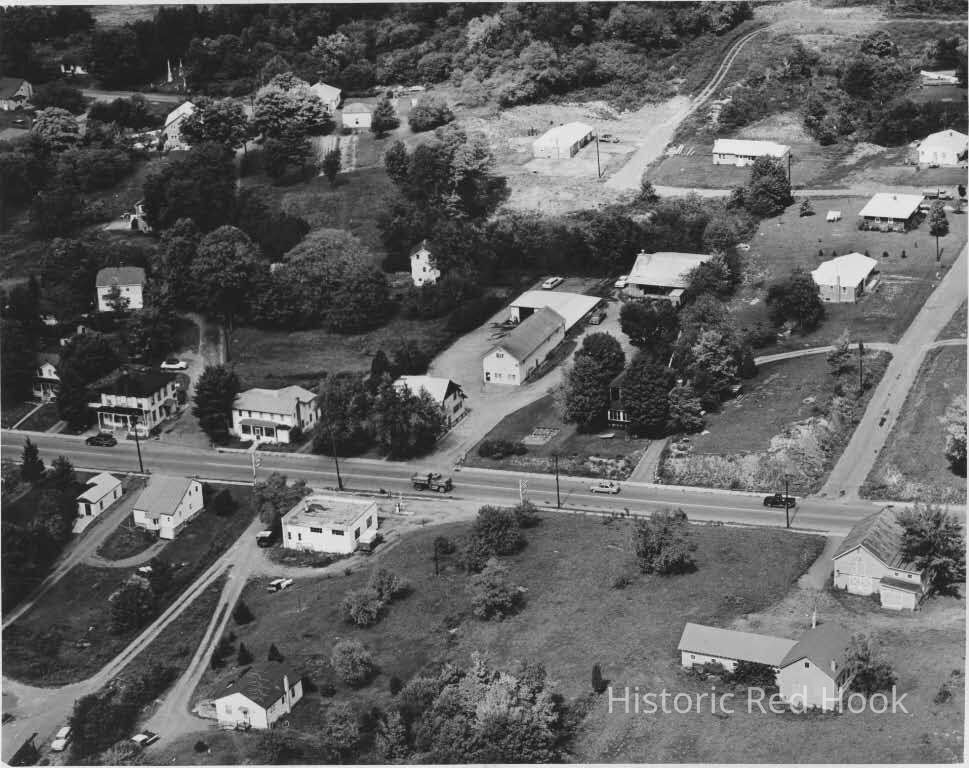 Views include Vin's gas station, Luna Restaurant (now Brigitte Bistro), Wilken Bros. business (later Red Hook Electric). Wilken family house in front of business building was later moved to Margaret Street.Photograph Details