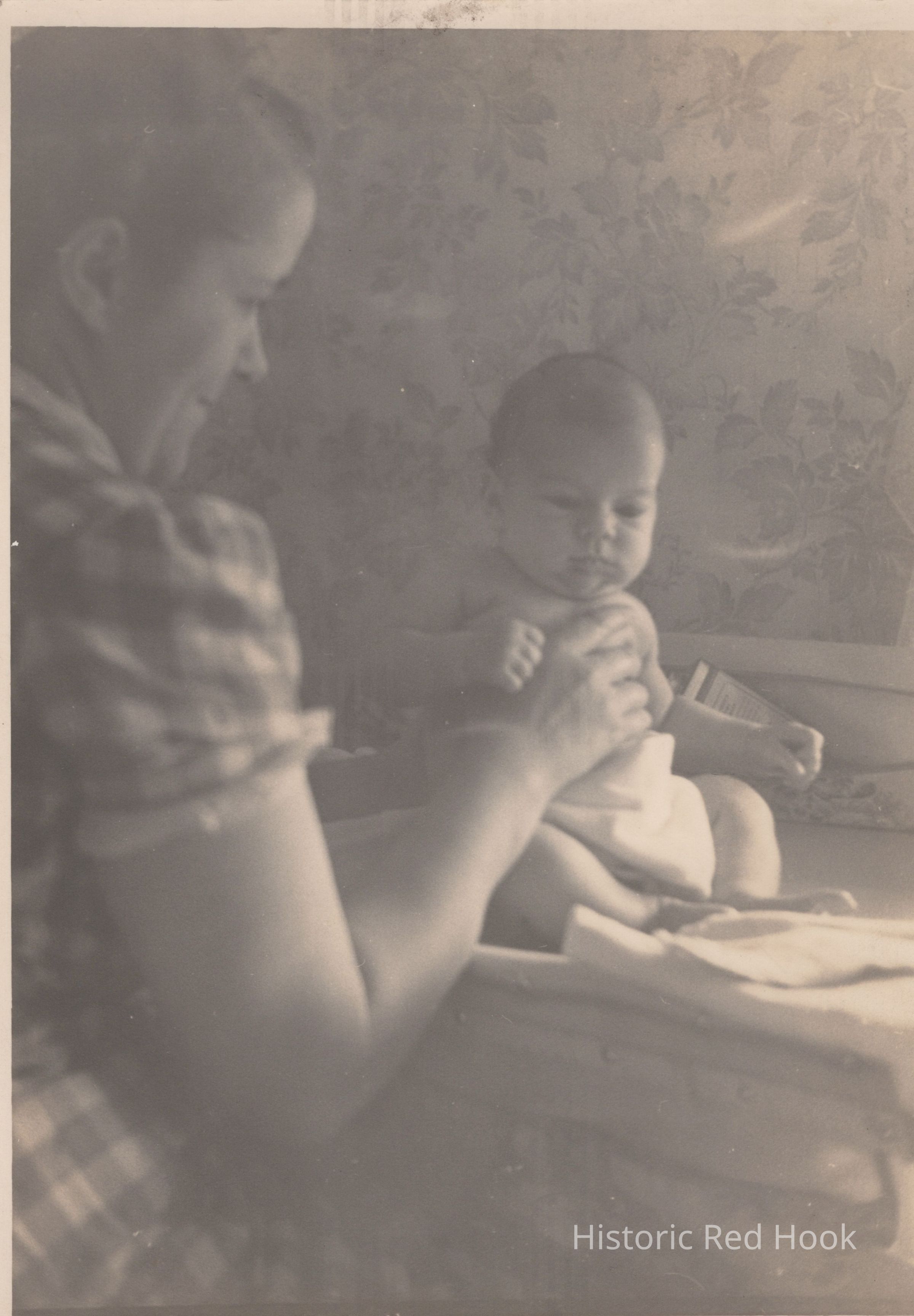 An informal photograph of Ruth Roberts bathing John Curtis (Curt) Roberts ca 1941.Photograph Details