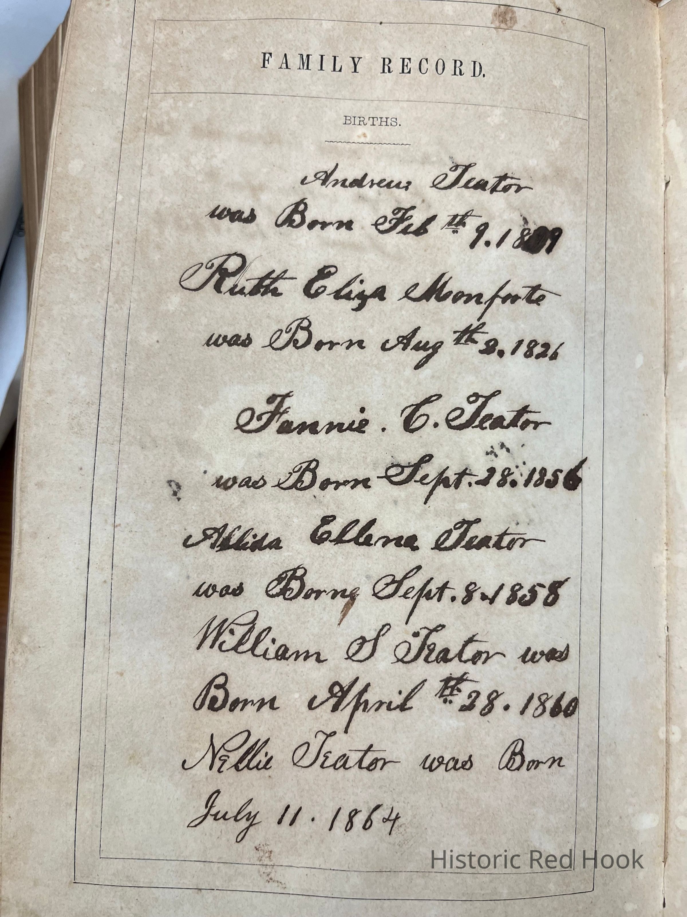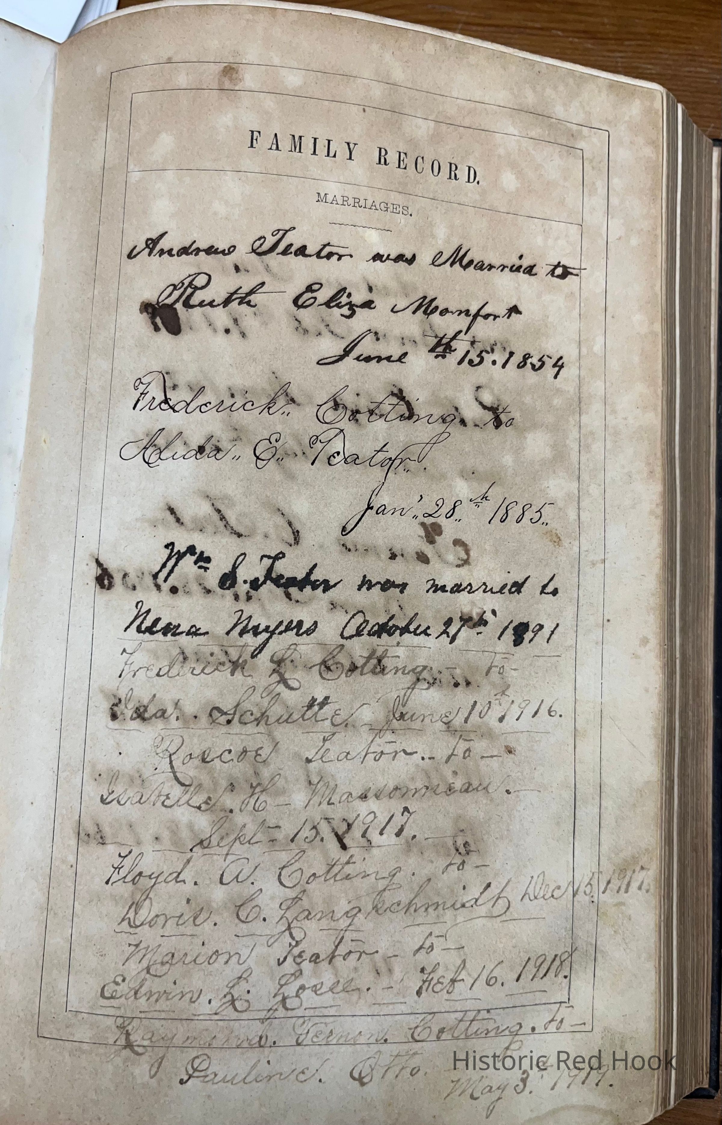 Records of Monfort, Teator, Cotting, Schutte families on family record pages 1826-1932.Collection