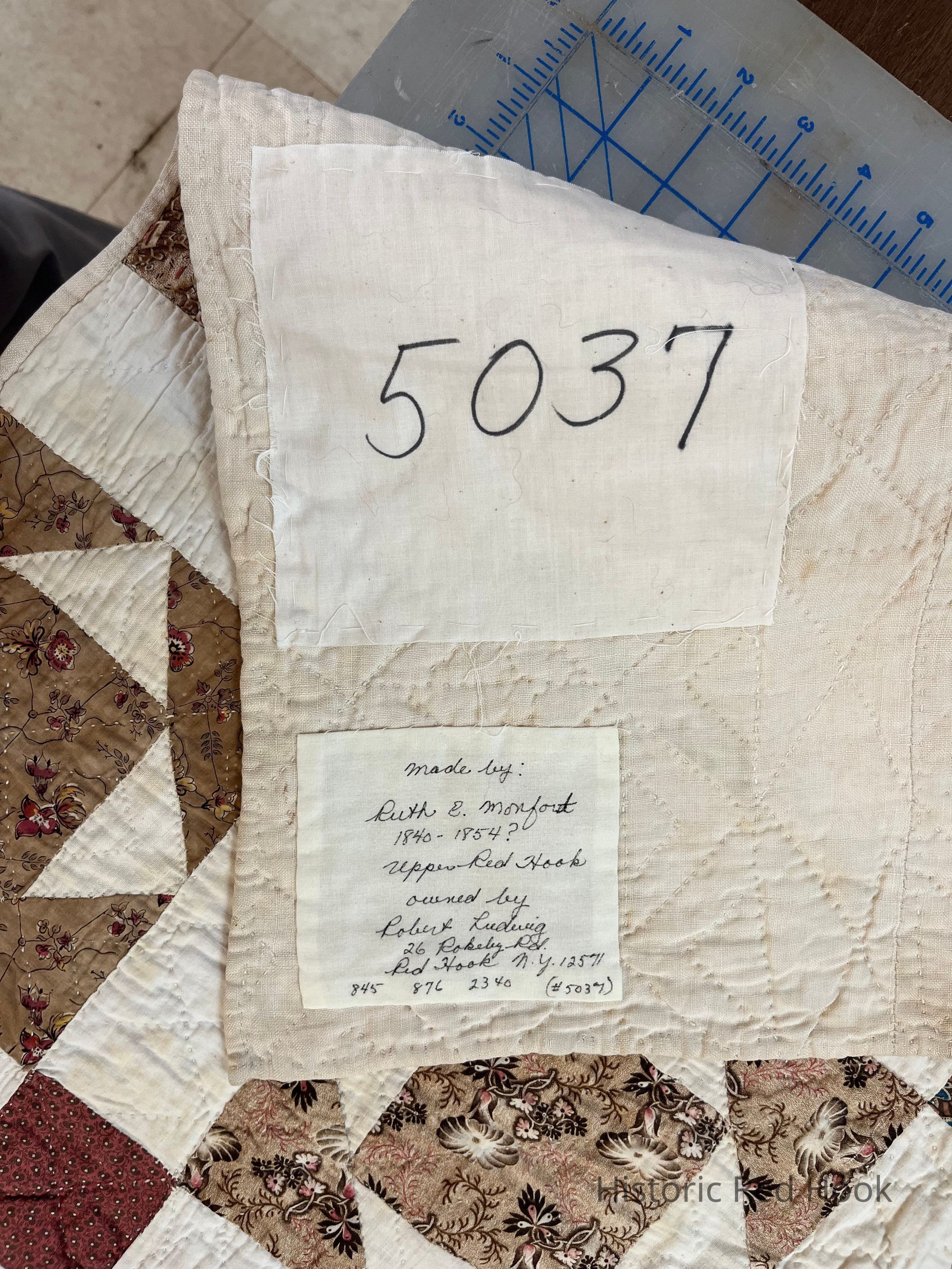 Quilt signed by Ruth Eliza Monfort, (later Teator) of Upper Red Hook, c 1840s-50sCollection