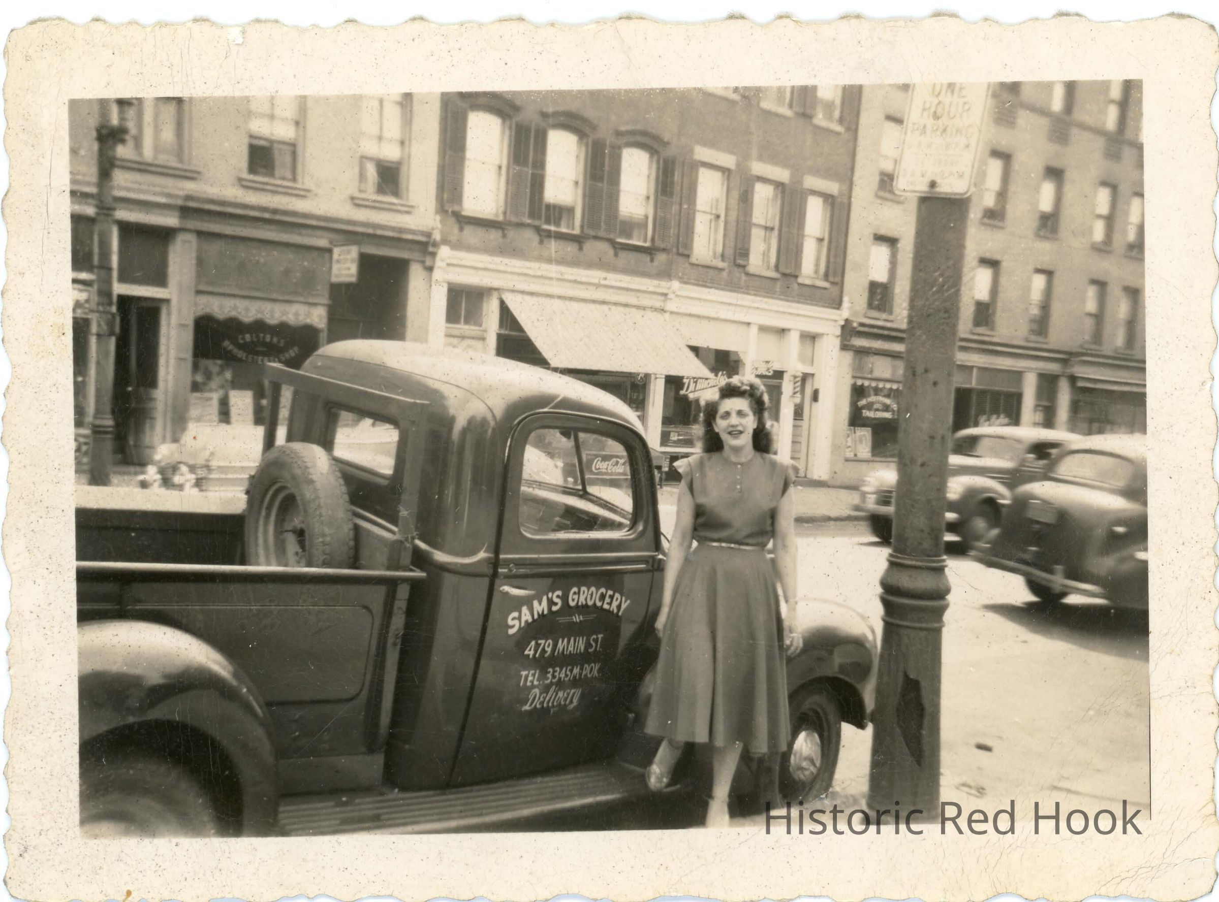 Woman Standing by a Pickup Truck, "Sam's Grocery" - 1940's.