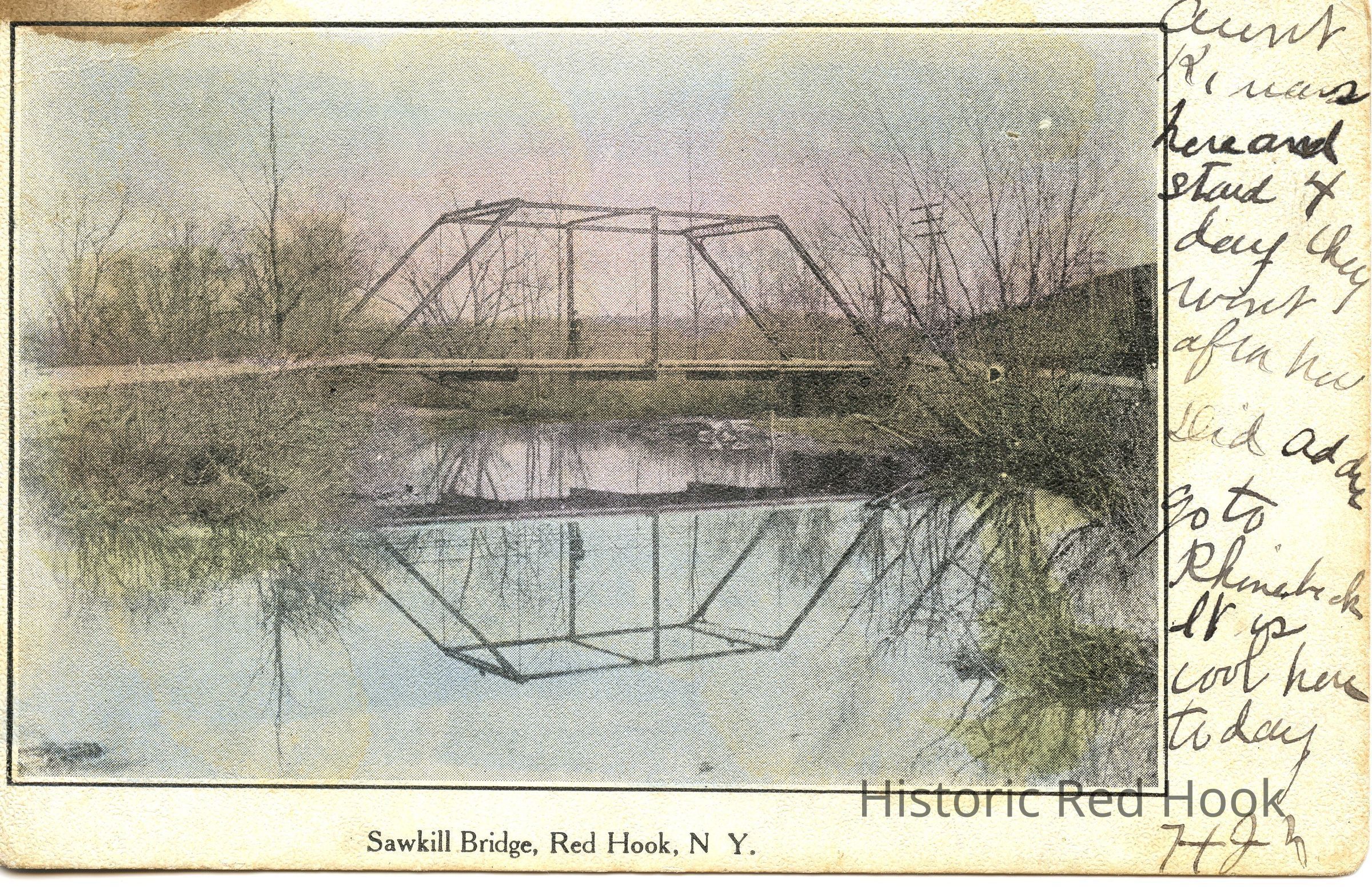 color tinted postcard of Sawkill Bridge Postmarked 1913Subject Place
