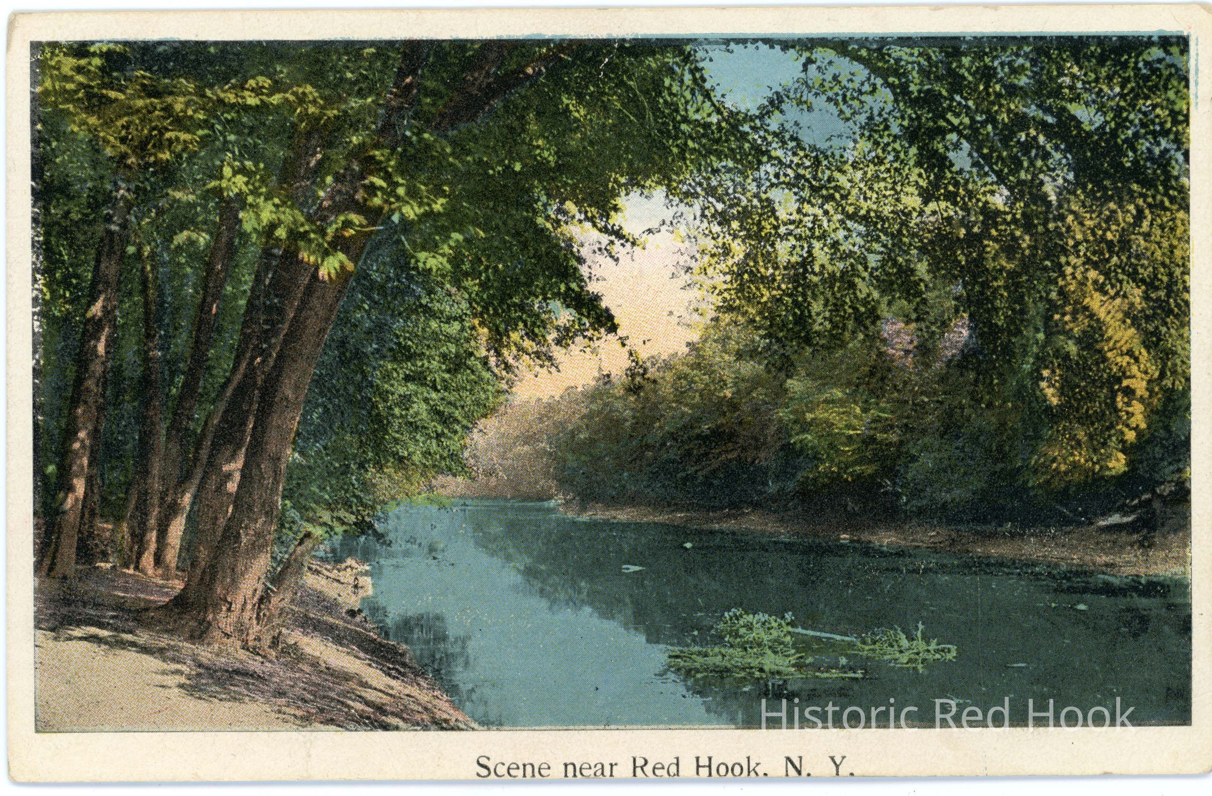 Scene near Red Hook, N.Y. color illustration of a stream lined with trees