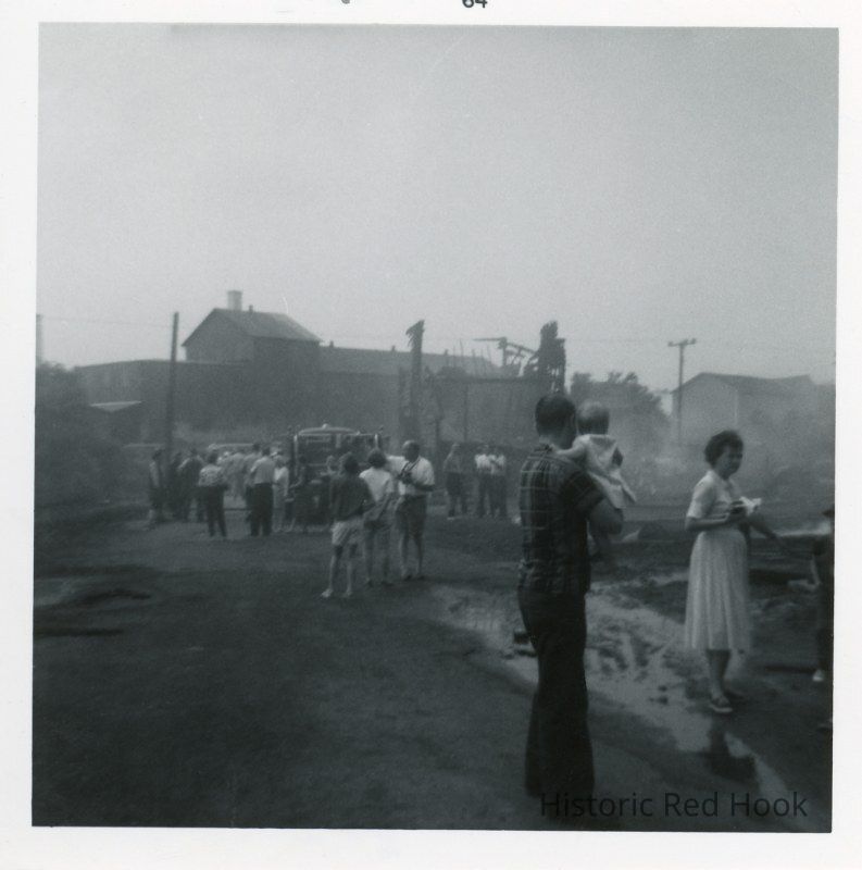 Scheffler Lumber Co property showing people in the road after the fire. September 1964 stamped on border.Collection