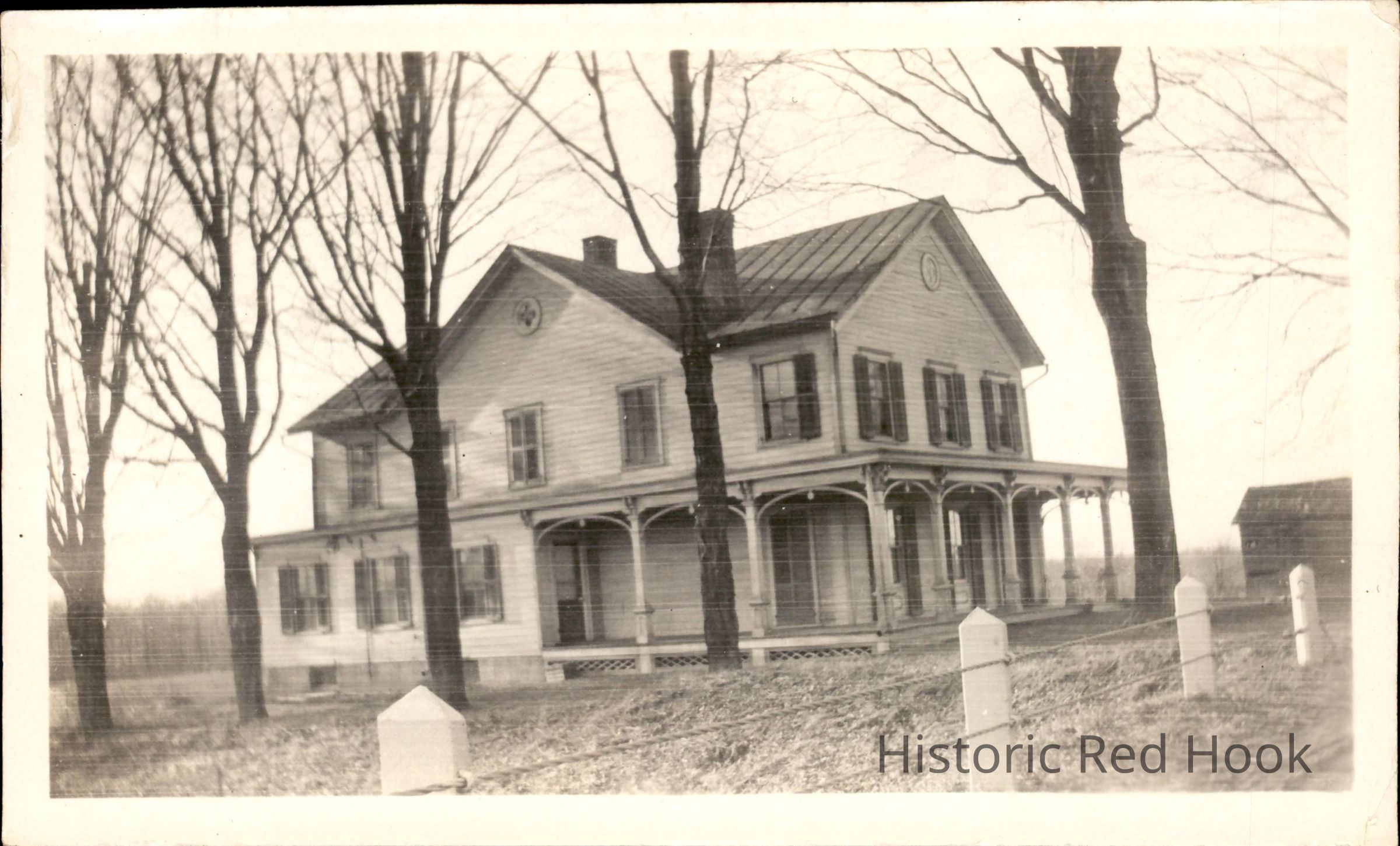 b/w photo of Scism house in Red Hook (8209 Rt 9.) Formerly the Cotting farmhouse.Photograph Details