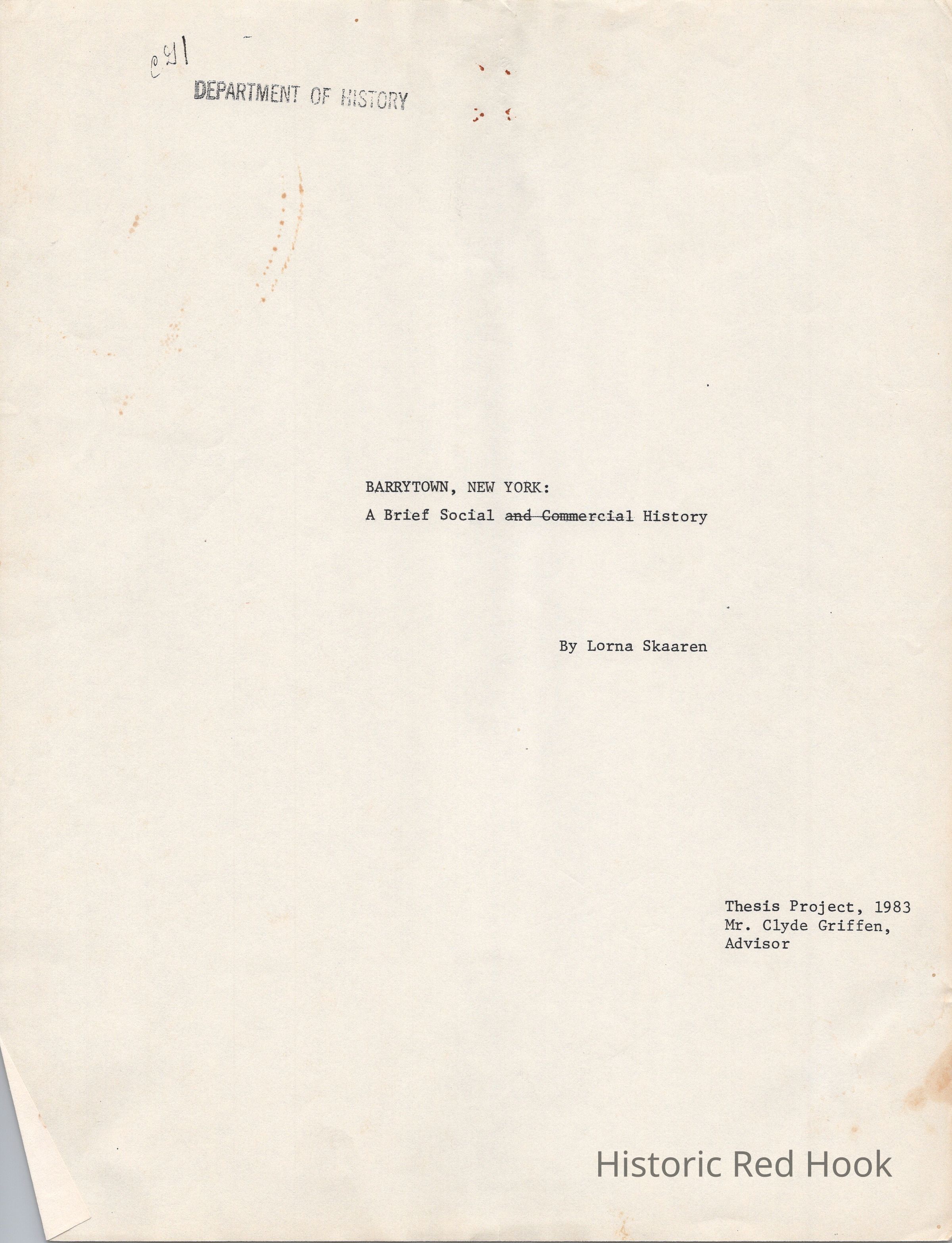 Bard College Senior Thesis by Lorna Skaaren, 1983, entitled "Barrytown, New York: A Brief Social and Commercial History." Mr. Clyde Griffen, advisor.Relationships