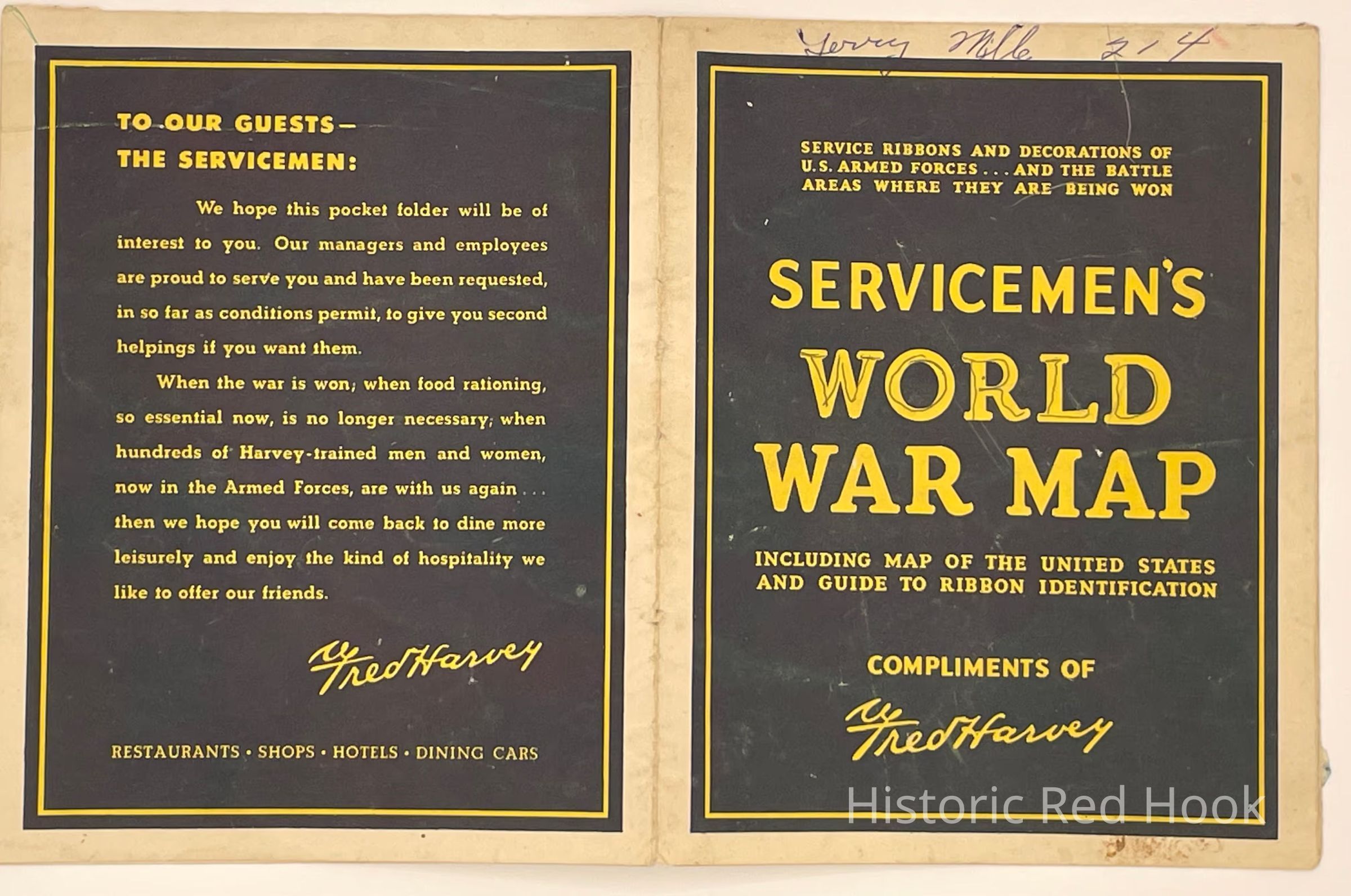 Complimentary World Map for Servicemen from Fred HarveyCollection