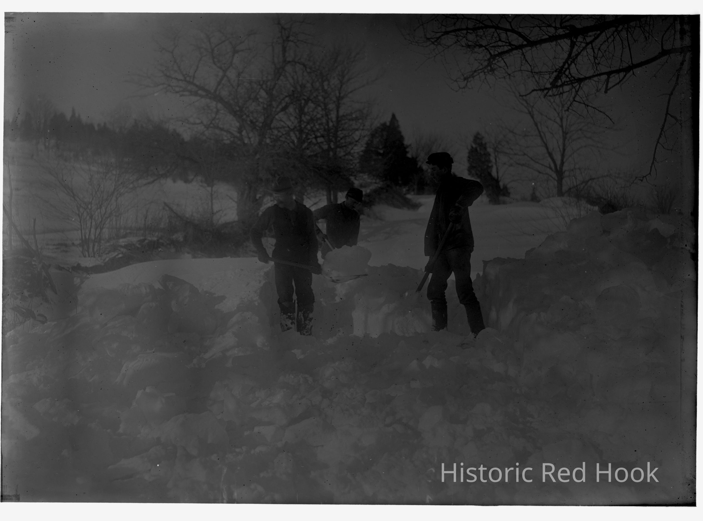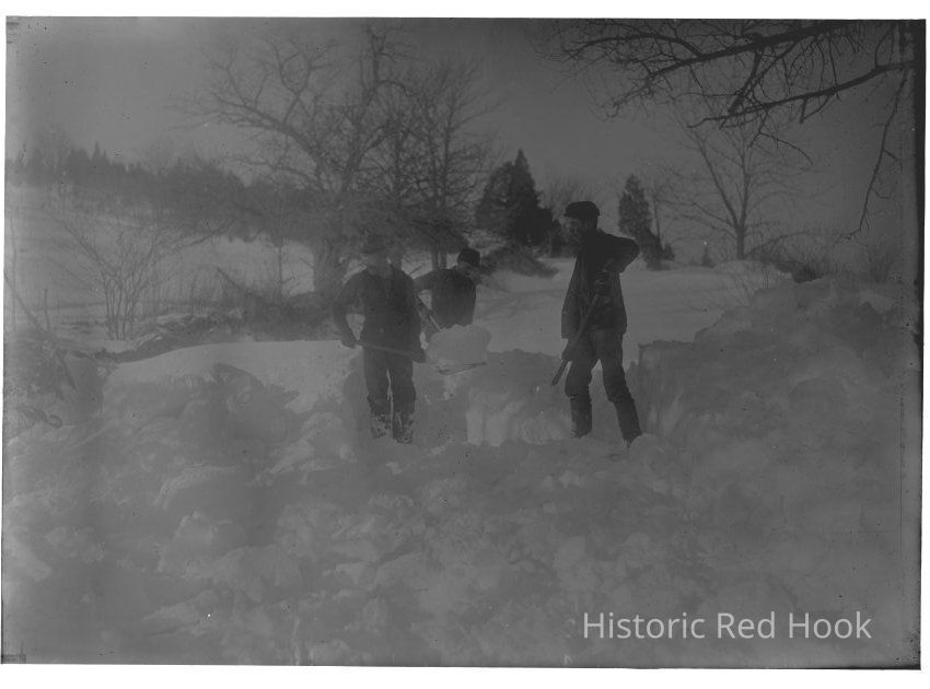 Shoveling snow, likely on W.S. Teator Farm