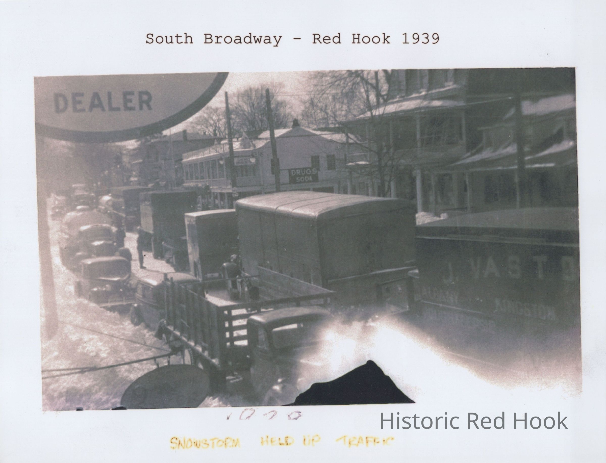 Snowstorm holding up traffic on South Broadway in Red Hook, NY, 1939