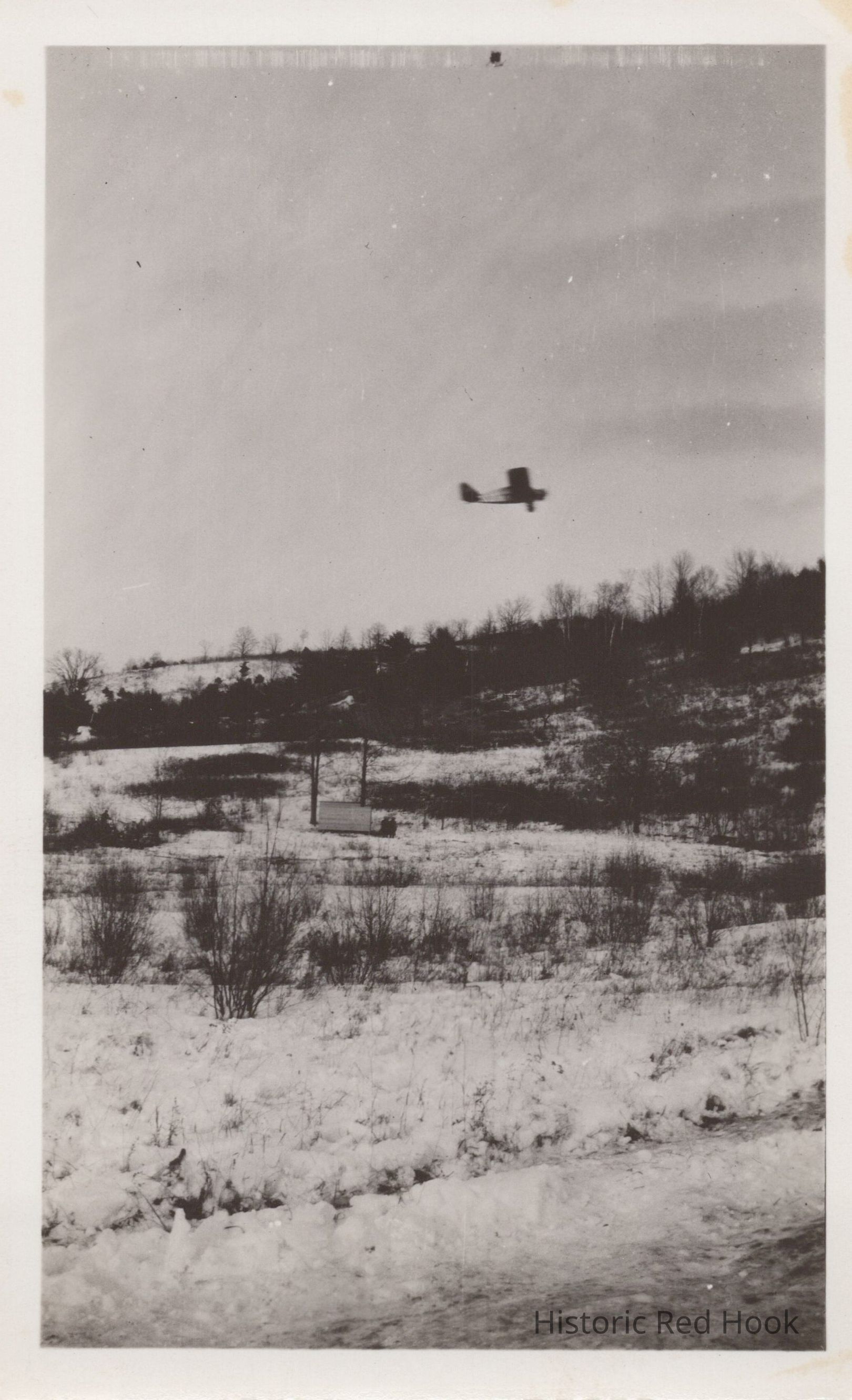 Photo of a snowy landscape with airplane flying above it [Check number]