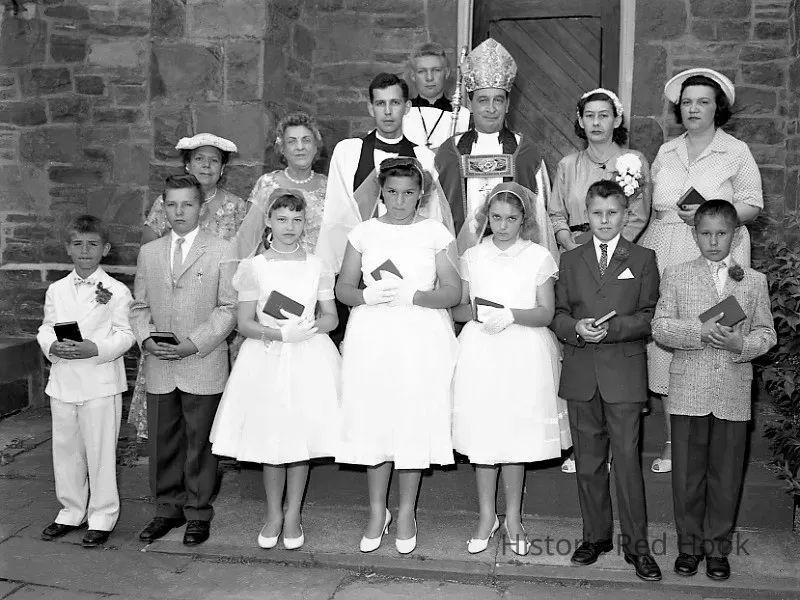 A group of children and adults posing at St. Pauls Trinity Church communion, Tivoli, 1959Collection