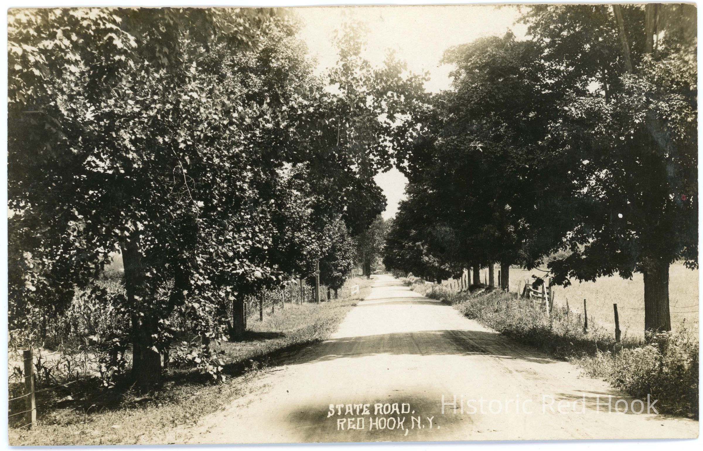 View of tree-lined road labelled State Road (Albany Post Road)?, Red Hook, N.Y.