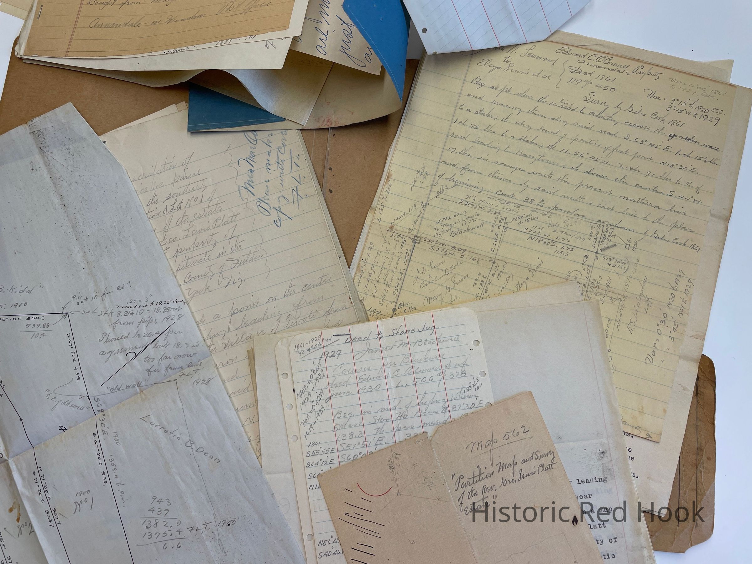 Deed: 1914 from Estelle G. Platt, party of 1st part, George W. Platt & wife Edith T., party of 2nd part and Clara A. Blackwell party of the 3rd part and Kenyon Parsons & wife Helen, parties of the 4th part. All owners of property of Rev. G. Lewis Platt’ property in Red Hook. He died 25 Jan 1900. Survey is todefine boundarylines of the four parcels.
