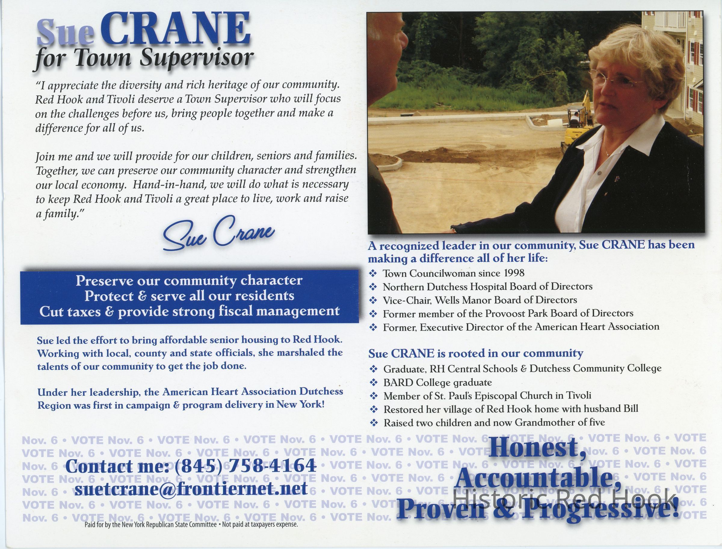 Sue Crane Campaign flyer for Town SupervisorCollection