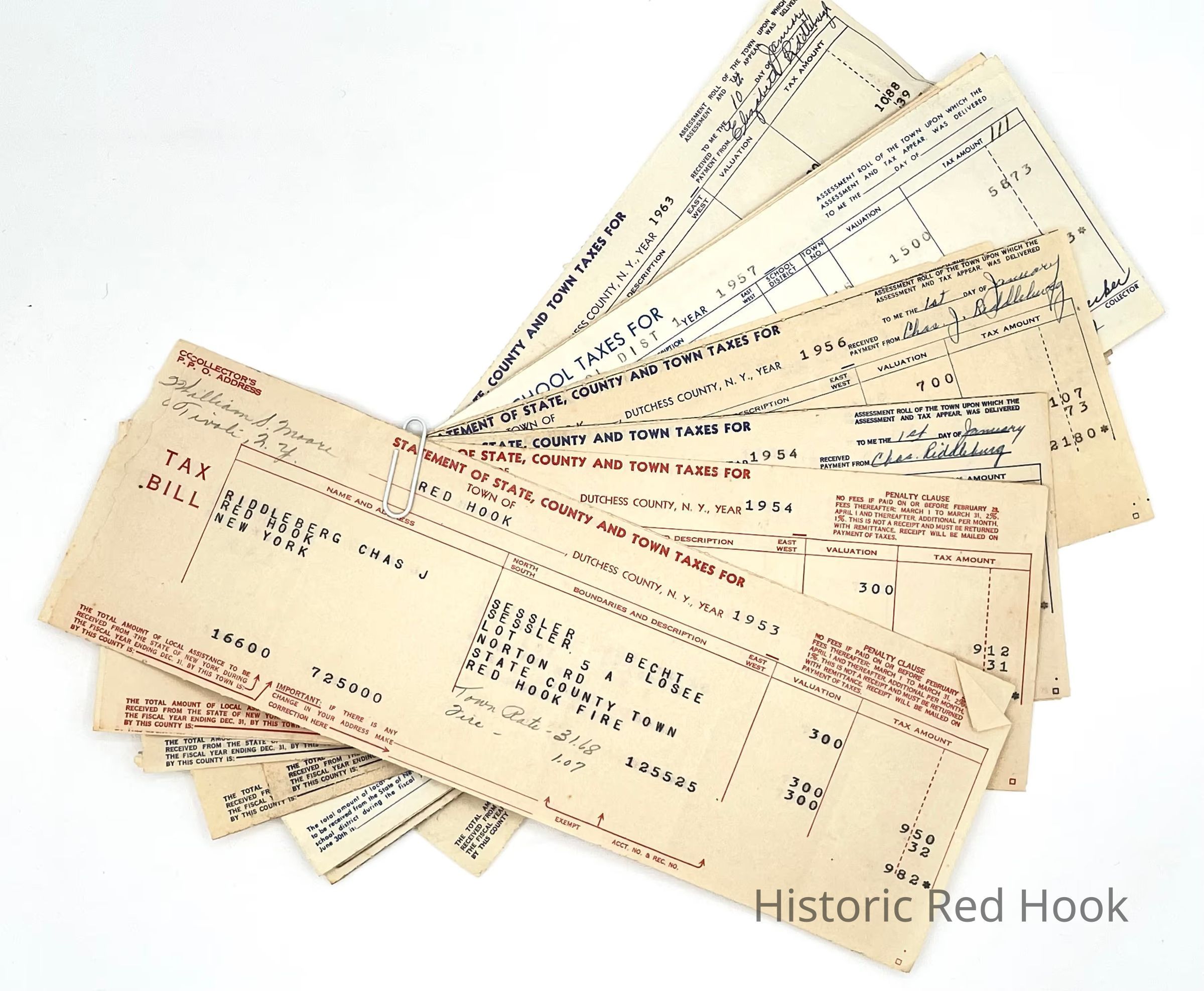 State, County and Town Property Tax Receipts for Charles Jr. and Elizabeth RiddleburghCollection