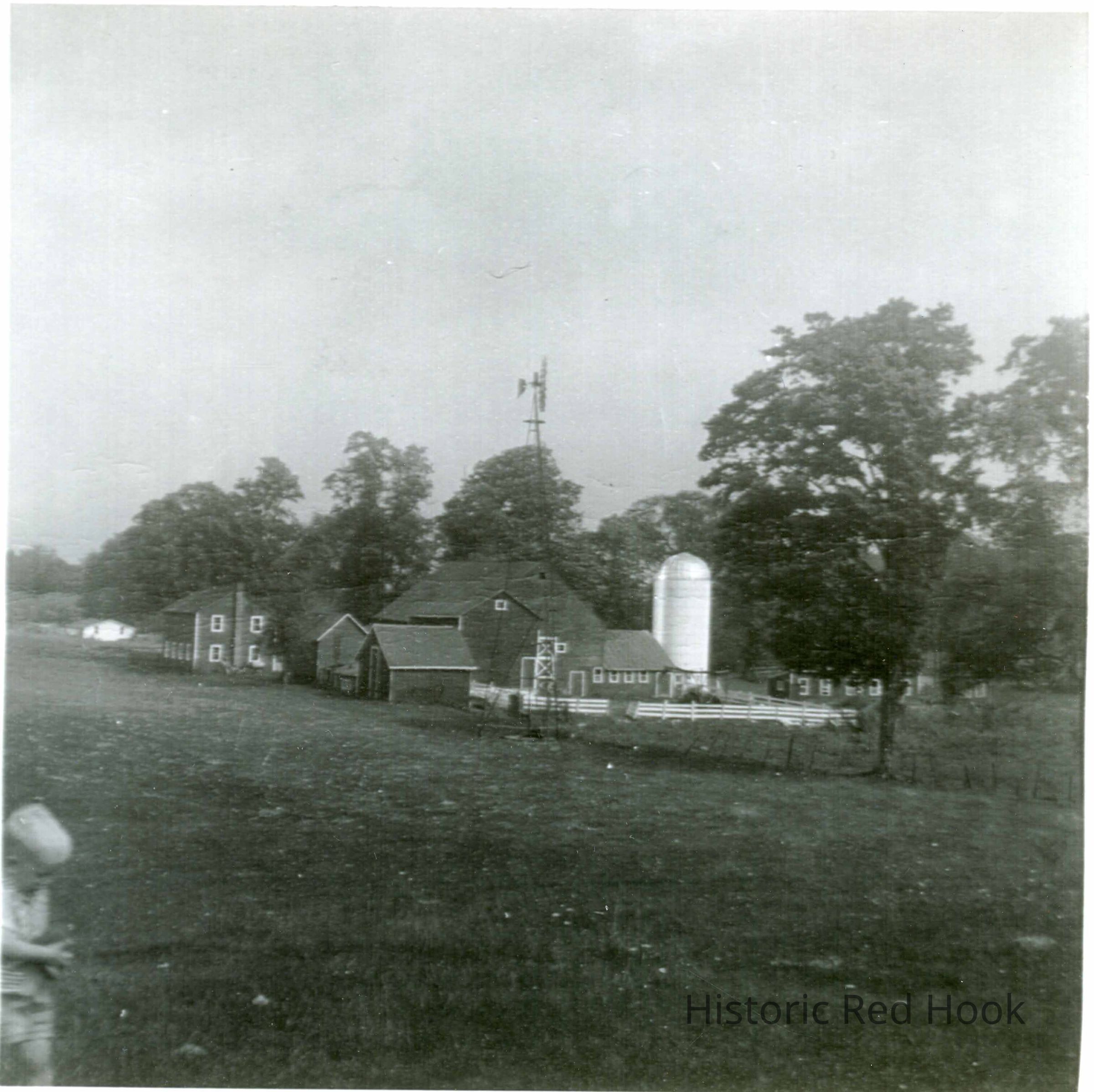 Teator farm Looking north from the meadow along the west bank of the Sawkill creek, circa 1948. Chicken coop to right of silo.Photograph Details