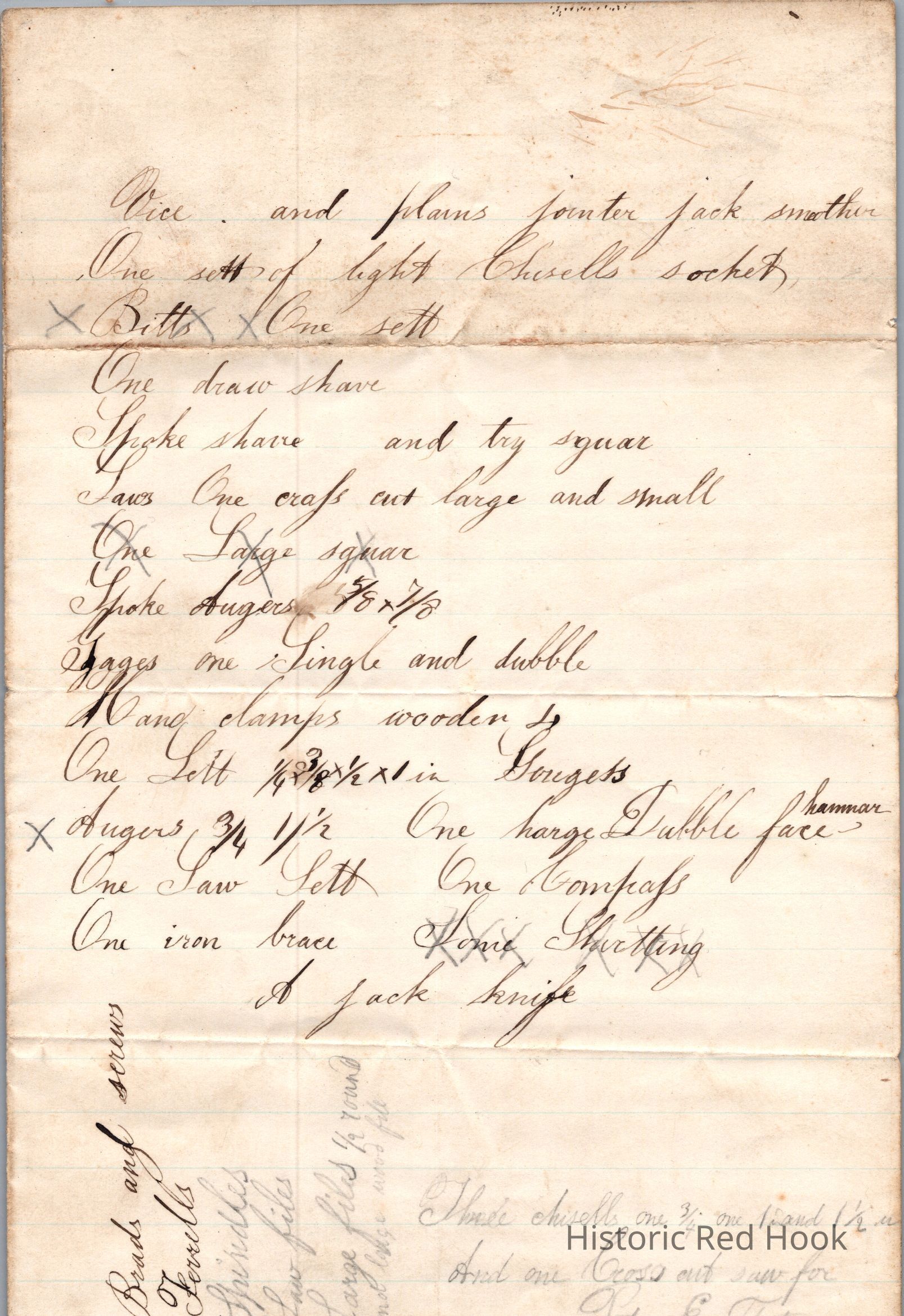Inventory of tools by Philip Teator. Unknown date.Collection