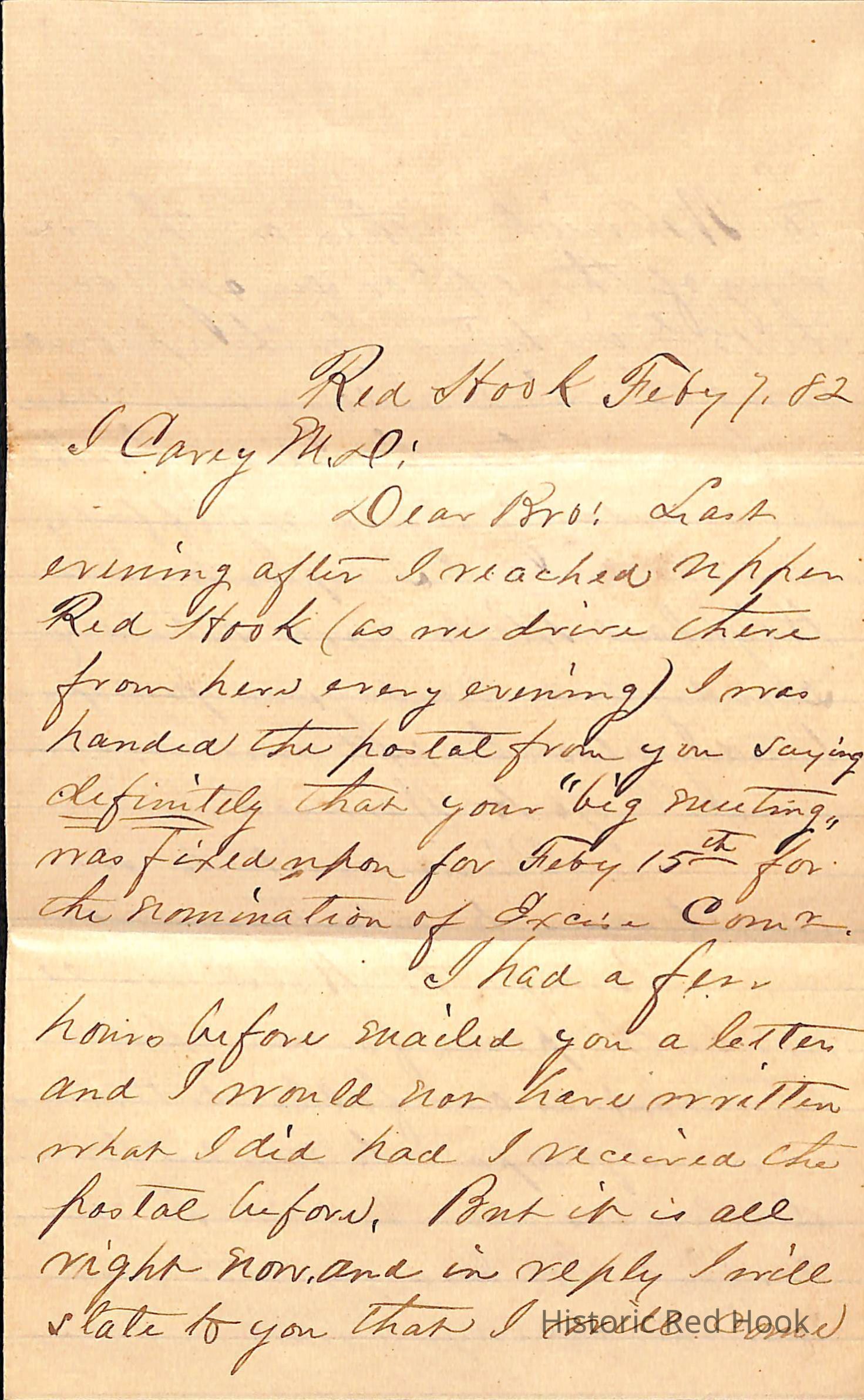 Letter from ? Maber to Carey Moul ? Feb 7, 1882 re temperance movement.