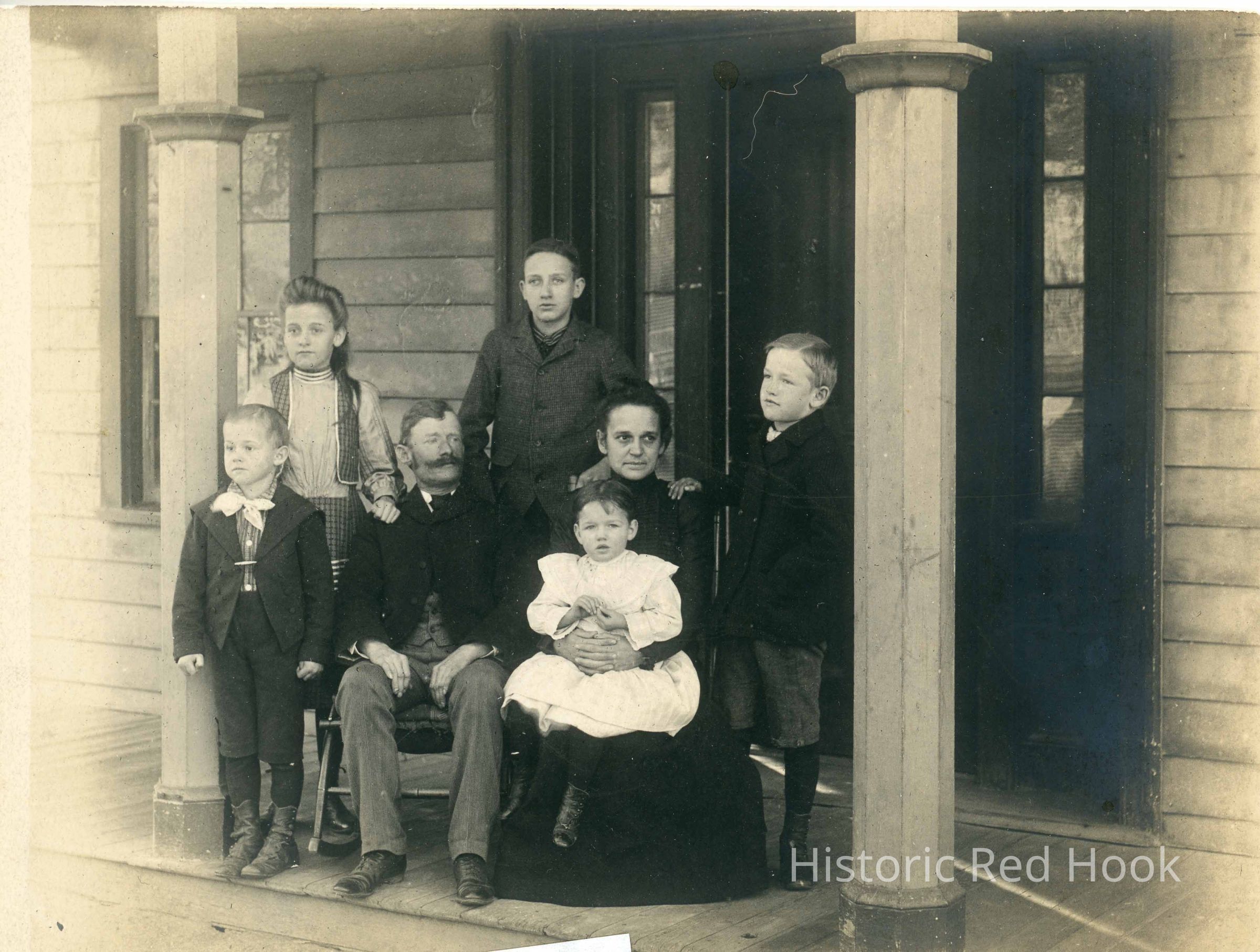 Portrait of the Alonzo Funk Family on a front porch in Upper Red Hook.Photograph Details