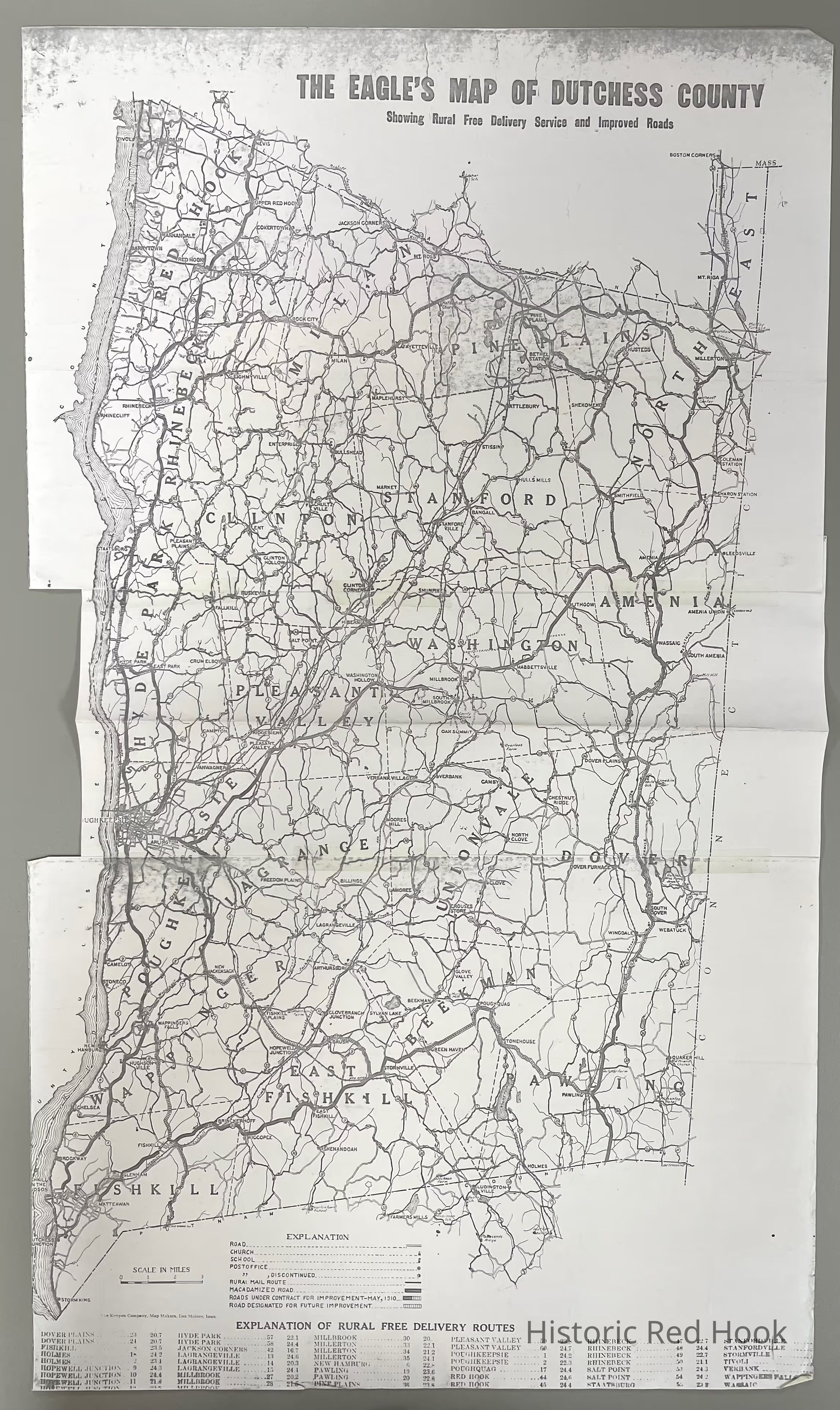 Map of Dutchess County, showing rural free delivery and improved roads, date unknown1910???