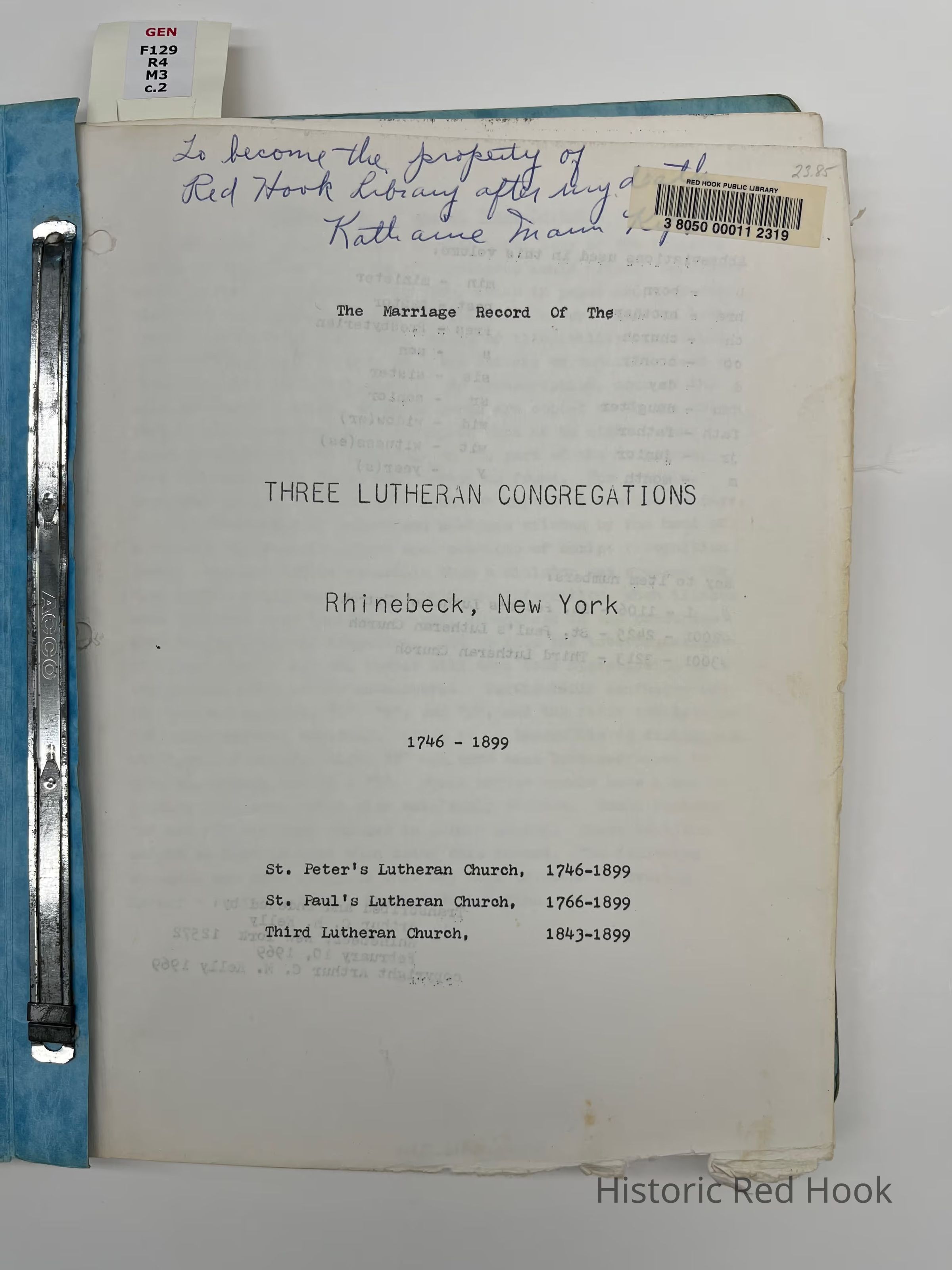 The marriage record of the three Lutheran congregations, Rhinebeck, New York, 1746-1899: