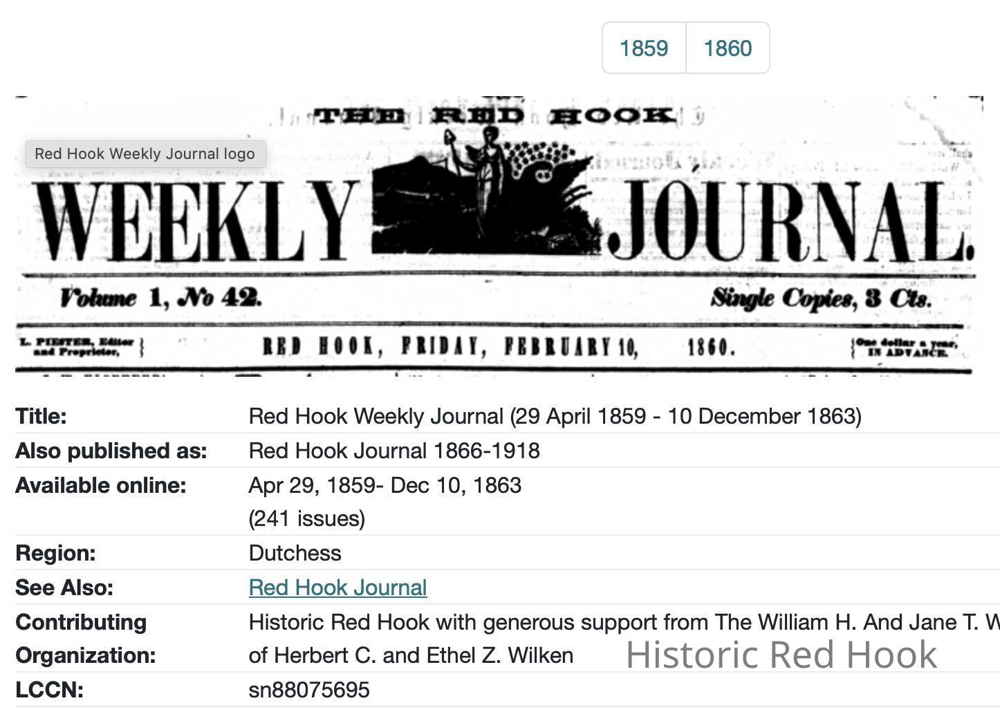The Red Hook Weekly Journal (1859-1863)Entry/Object ID