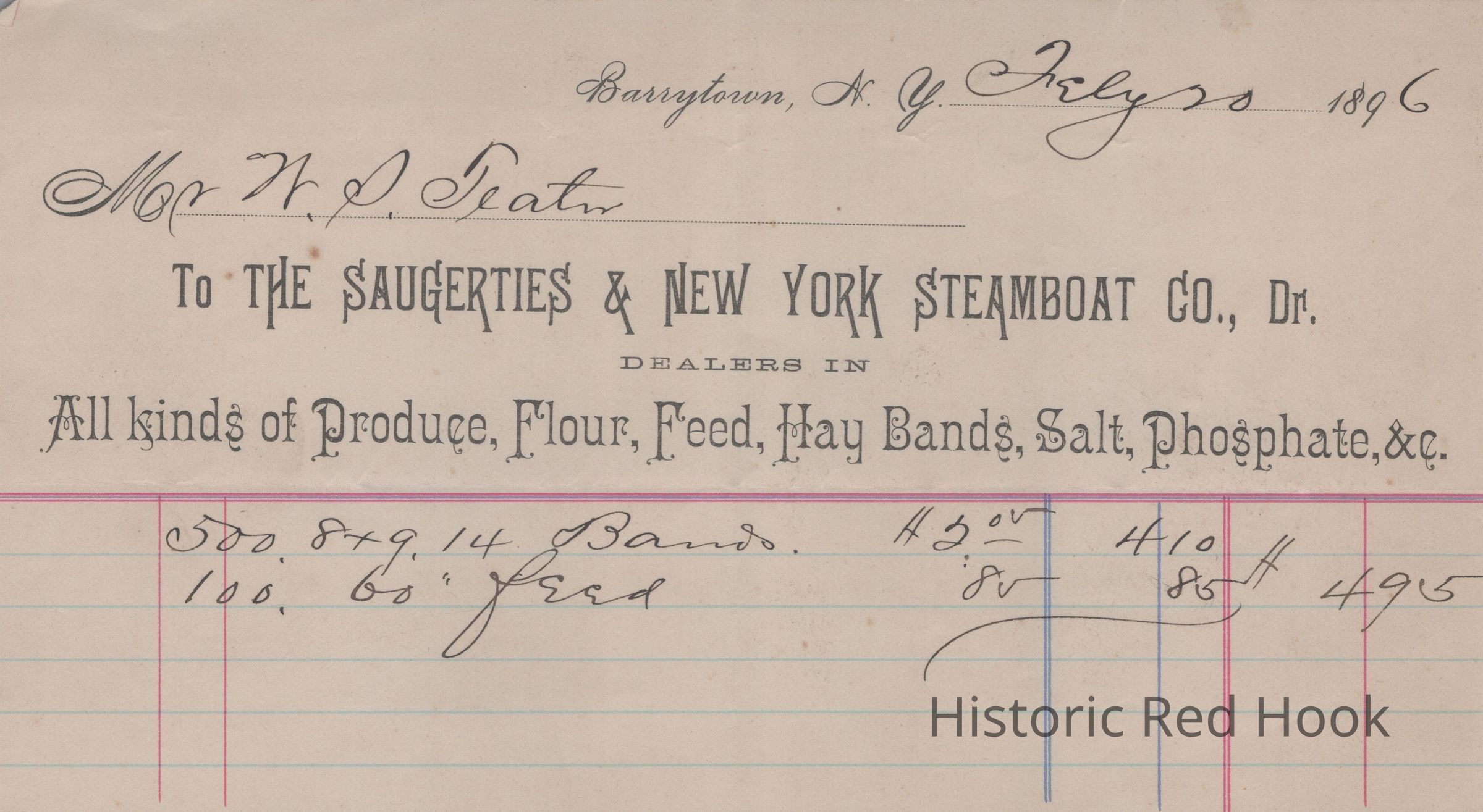 The Saugerties & New York Steamboat Co., Invoice 1896Entry/Object ID