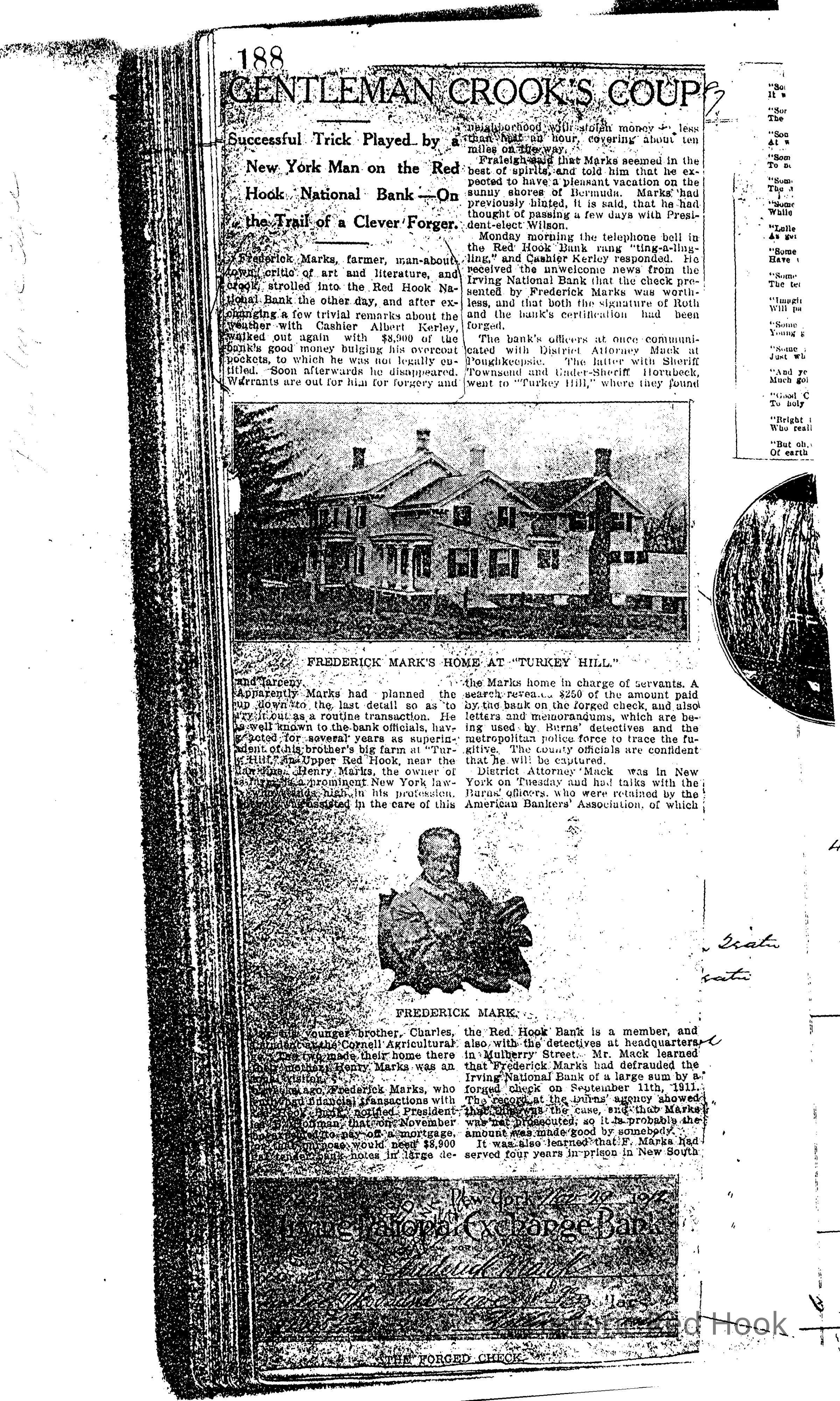 Photocopy of a Clipping from the Poughkeepsie Eagle - Describes the case of a forged check by Frederick Mark.Collection
