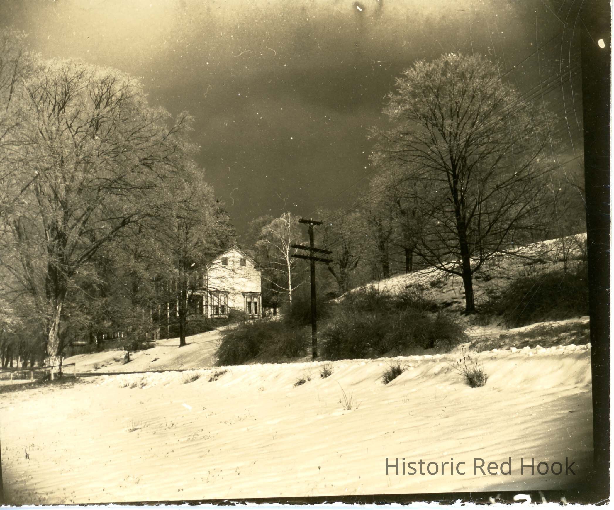This house is pictured on page 34 in "Upper Red Hook" by Roger Leonard. It was called the Thomas Tavern which General Punam chose as his headquarters in Red Hook. The house was a magnificent brick two story house with a gambrel roof on the side of the imposing Prospect Hill. This house is on the 1984 survey as 4 Spring Lake Road.Photograph Details