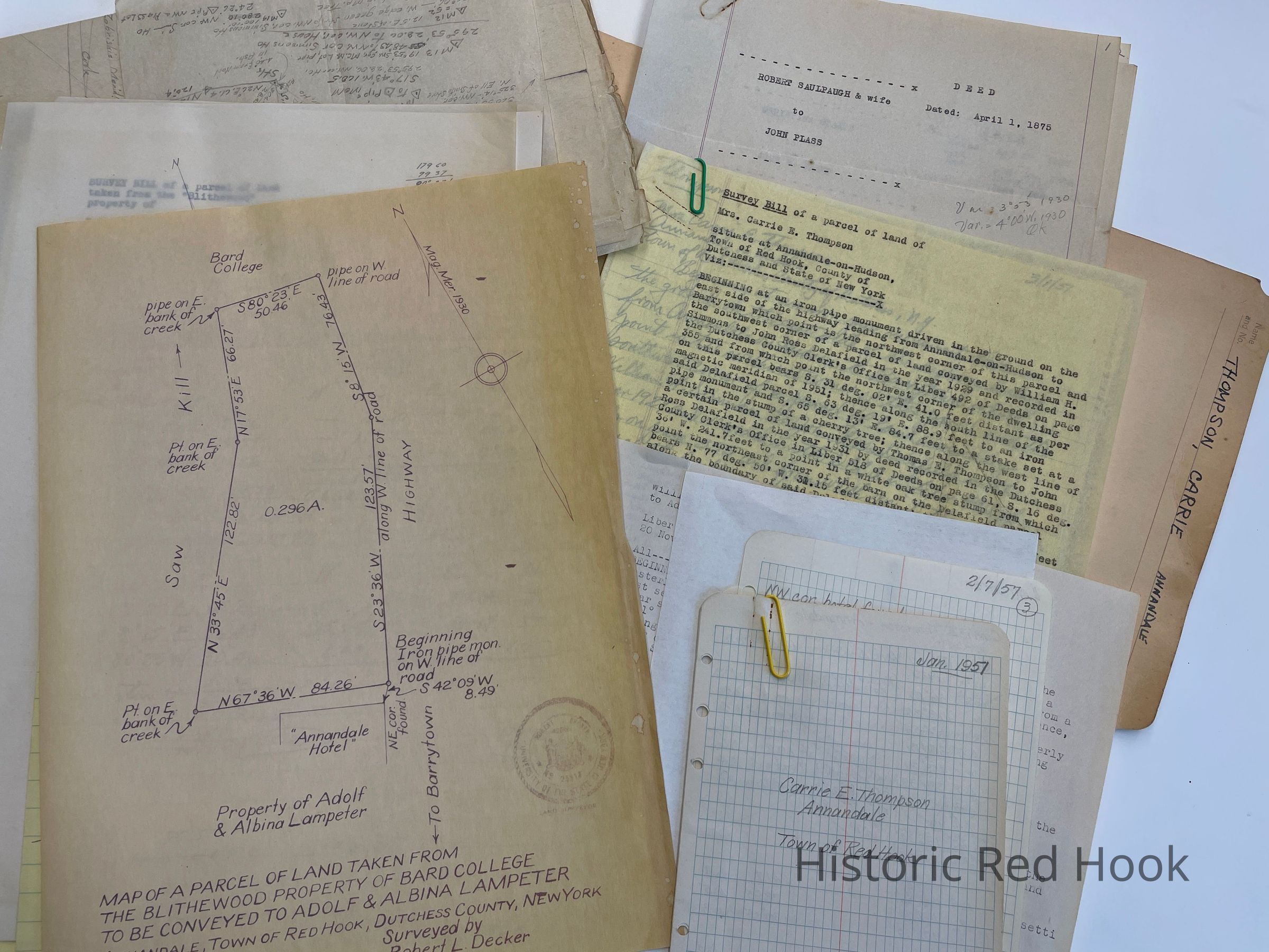 Map: Parcel taken from Blithewood. 0.296 acre to be conveyed to Adolph & Albina Lampeter Field Notes: Adolph Lampeter-Parcel adjoining on north from former Zabriskie "Blithewood" Deed: 761:461 Nov 20 1950 William N. West to Adolph & Albina Lampeter