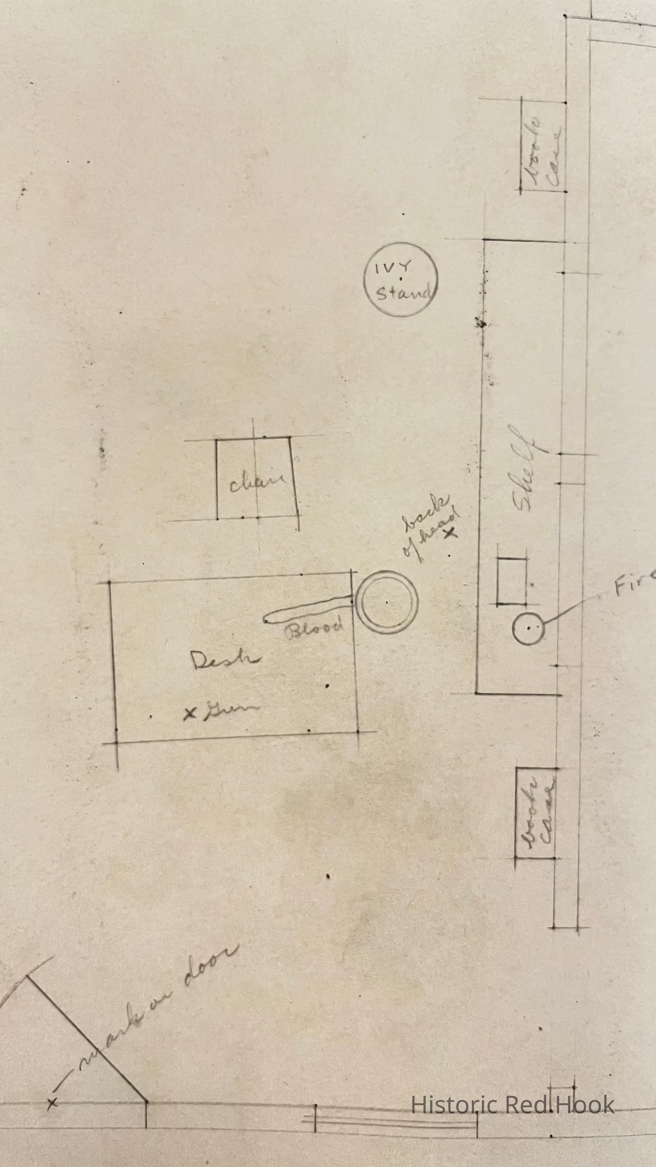 Crime Scene Sketch for the Tilt murder trail in 1947. Exhibit RH-7