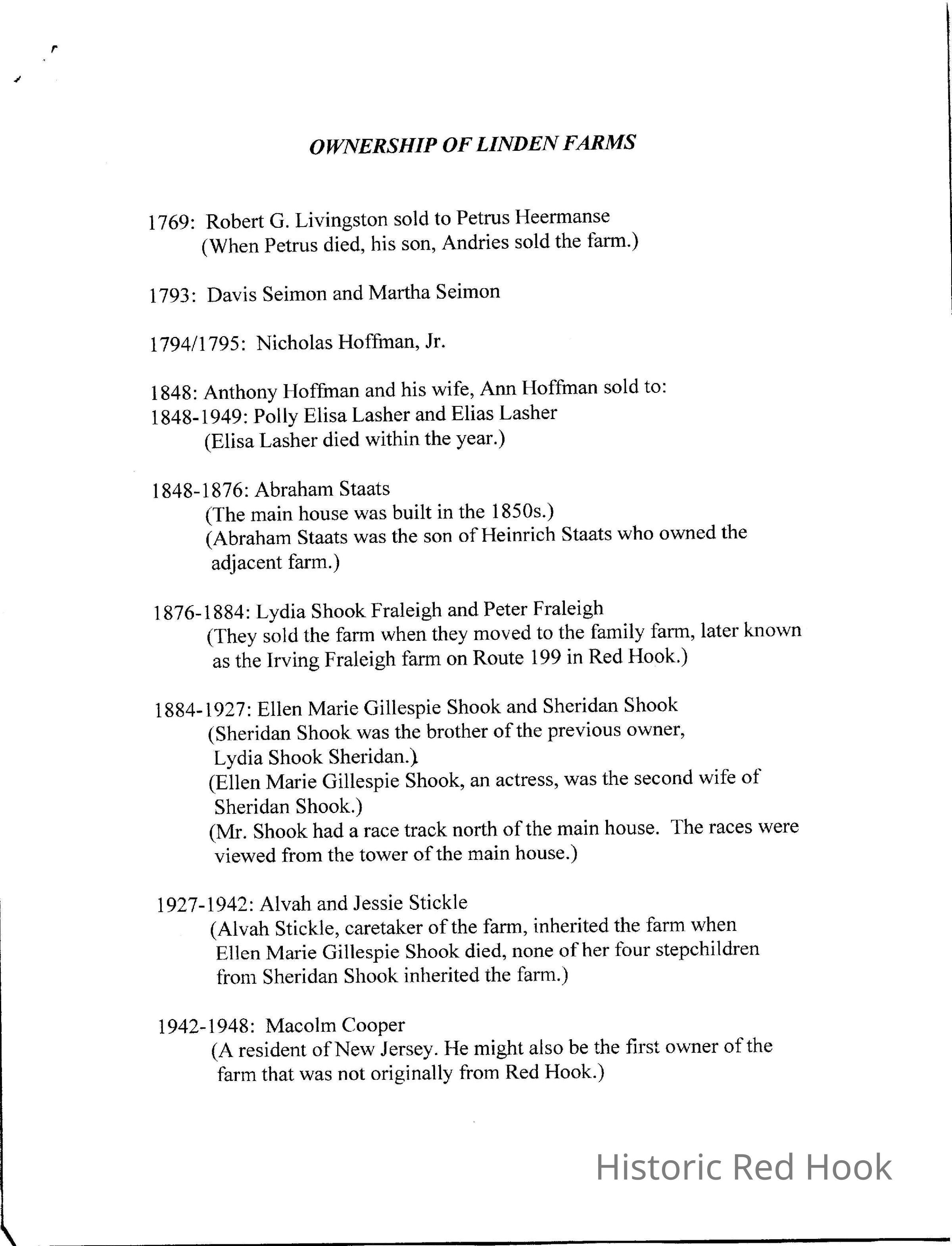 List of owners of Linden Farms (2024.34 folder includes copies of deeds and maps).