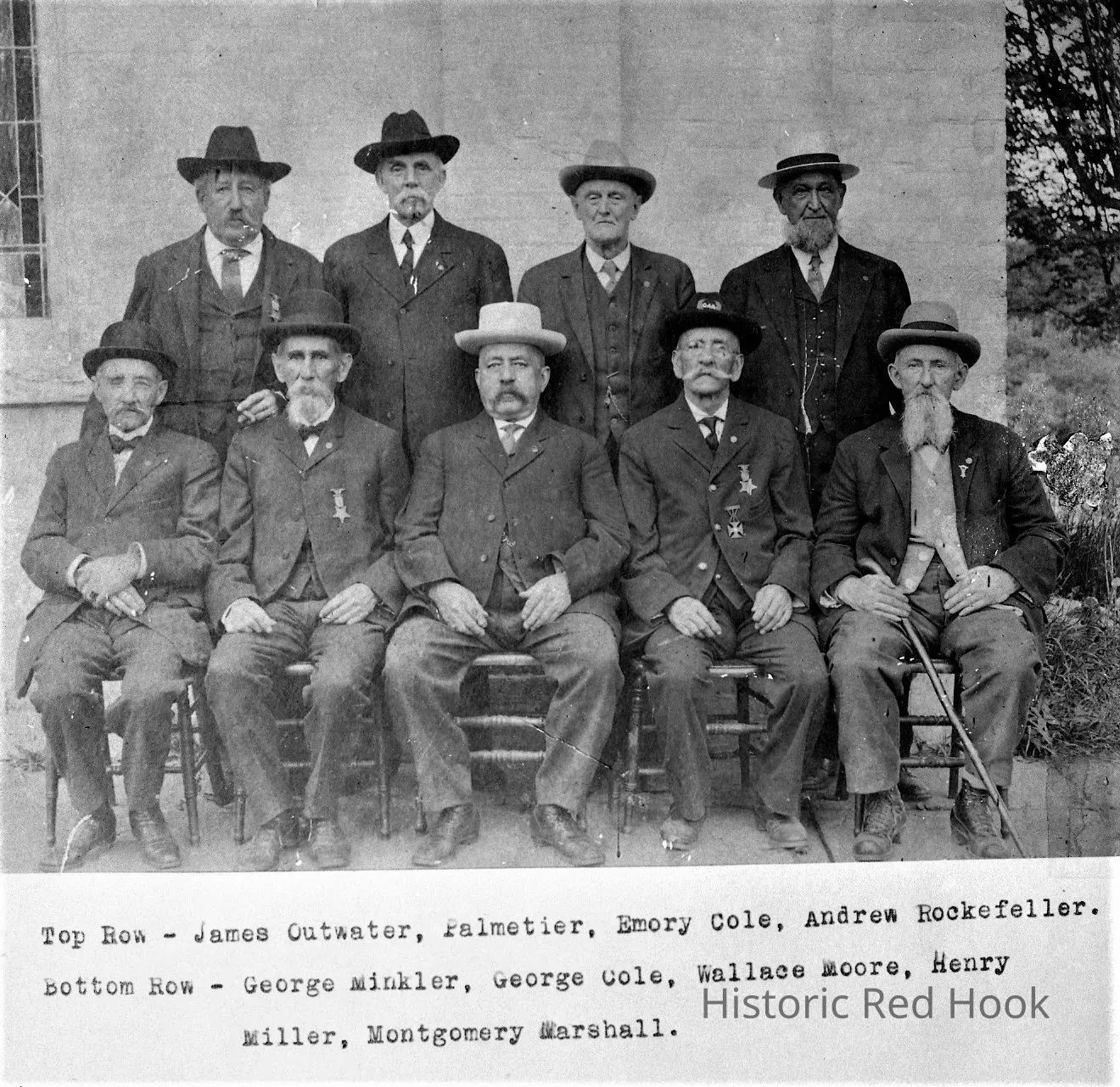 A group photo of Tivoli's Civil War veterans seated and standing in front of the Trinity Church at Tivoli, NY.Collection