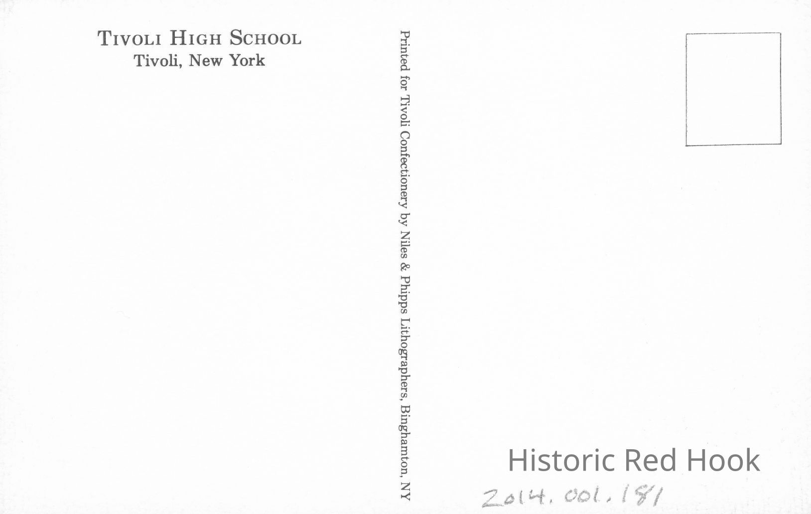 post card of Tivoli's High SchoolSubject Place