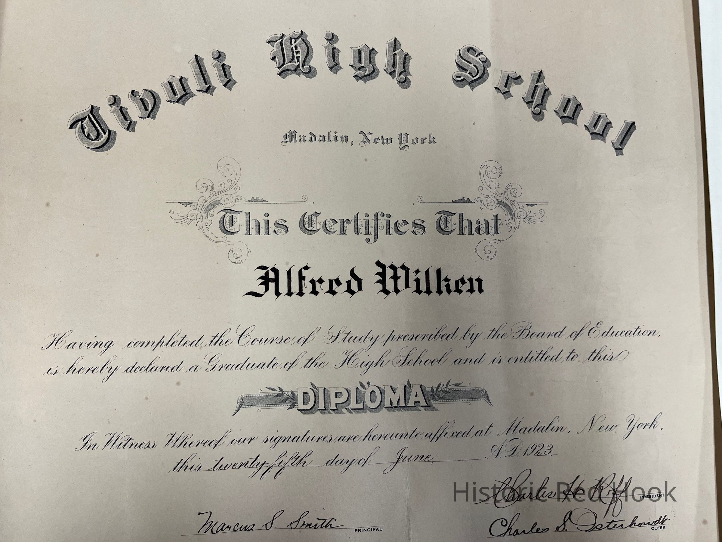 Tivoli High School Diploma, for Alfred Wilken, June 25, 1923Collection