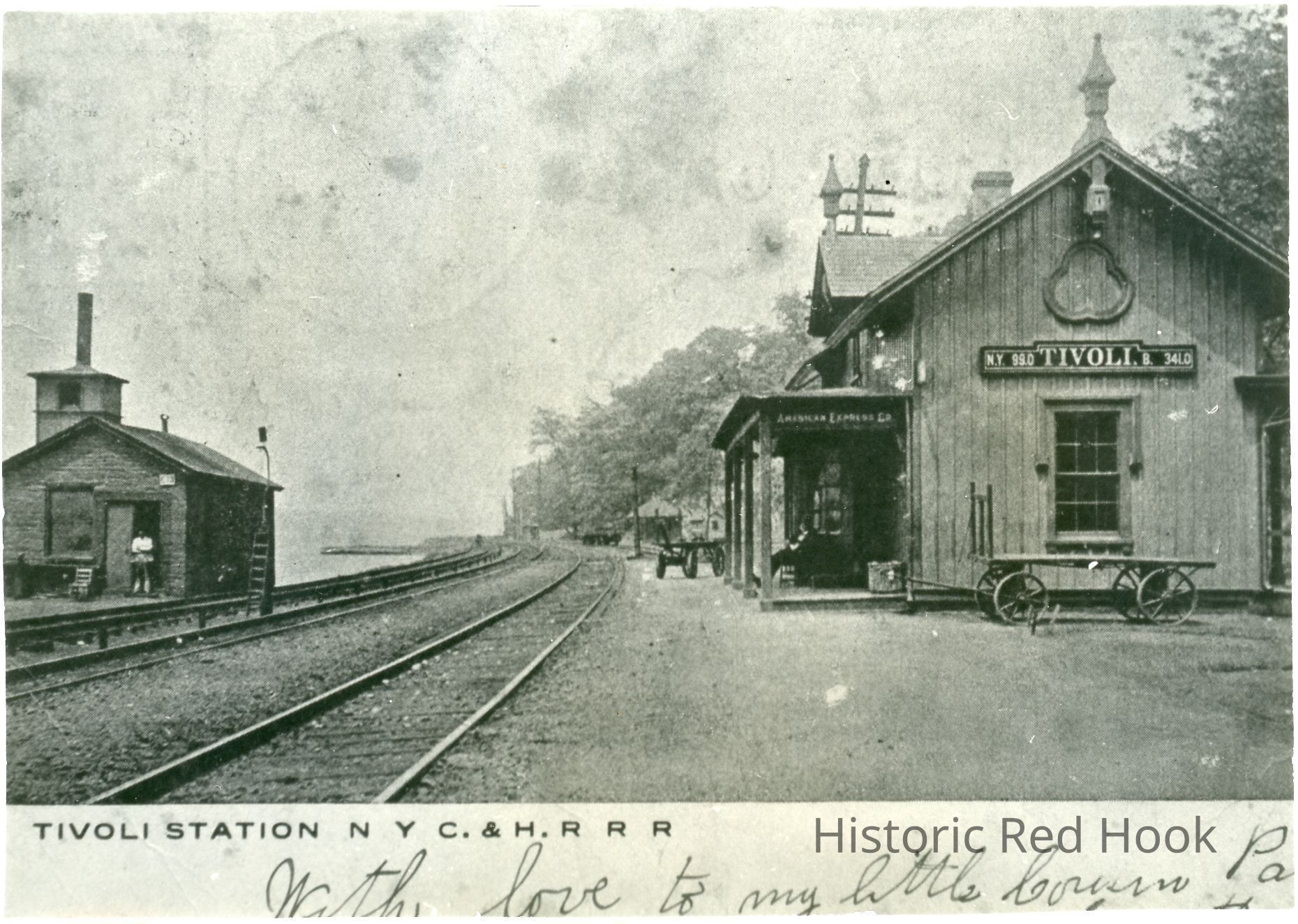 Postcard copy with view of Tivoli Station, NYC & HRRR showing station buildings and tracks