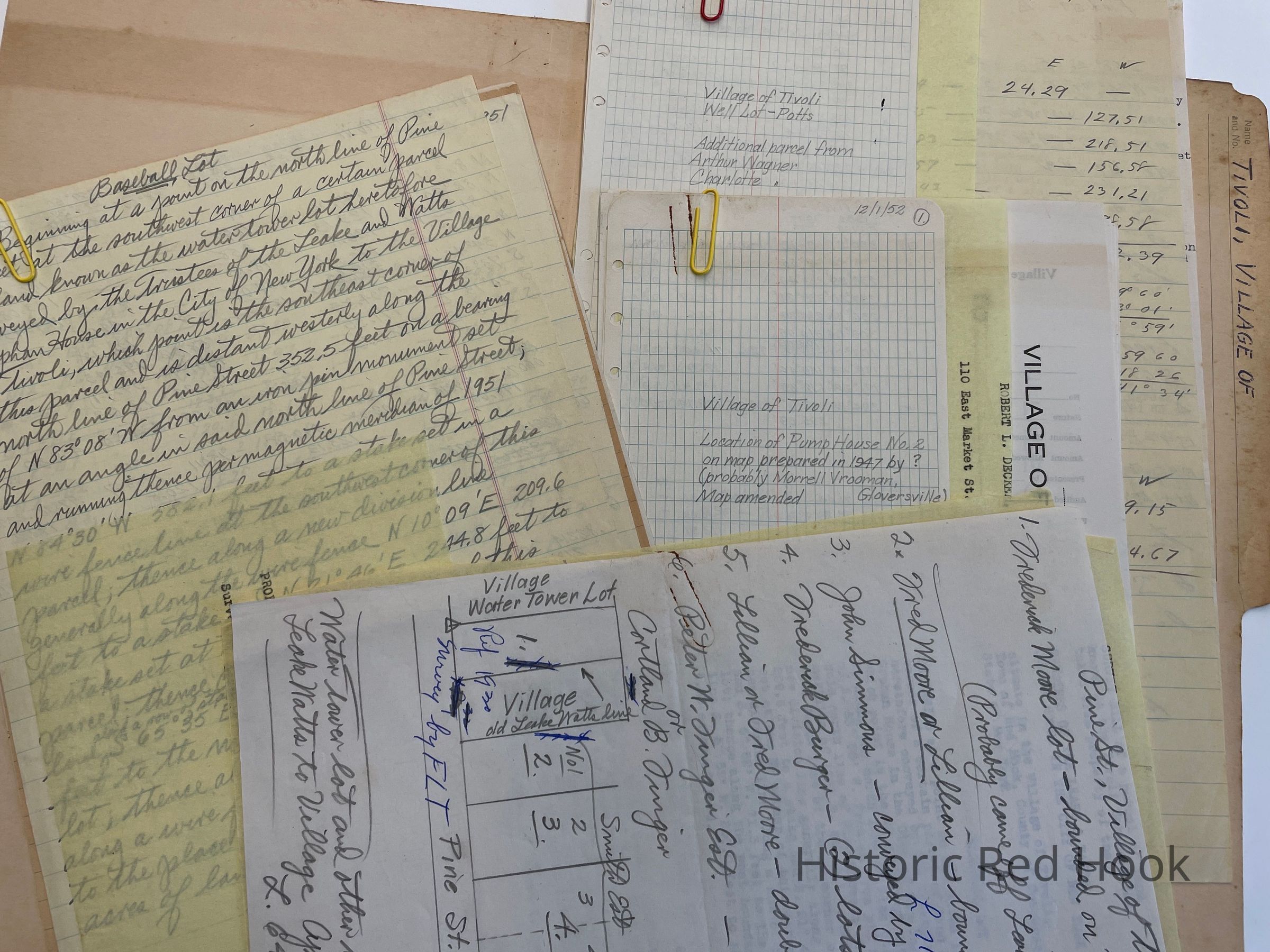 Survey: For Village of Tivoli Dec 1951 Known as the Baseball Lot Taken from property of Trustees of the Leake & Watts Orphan House. 4.63 acres