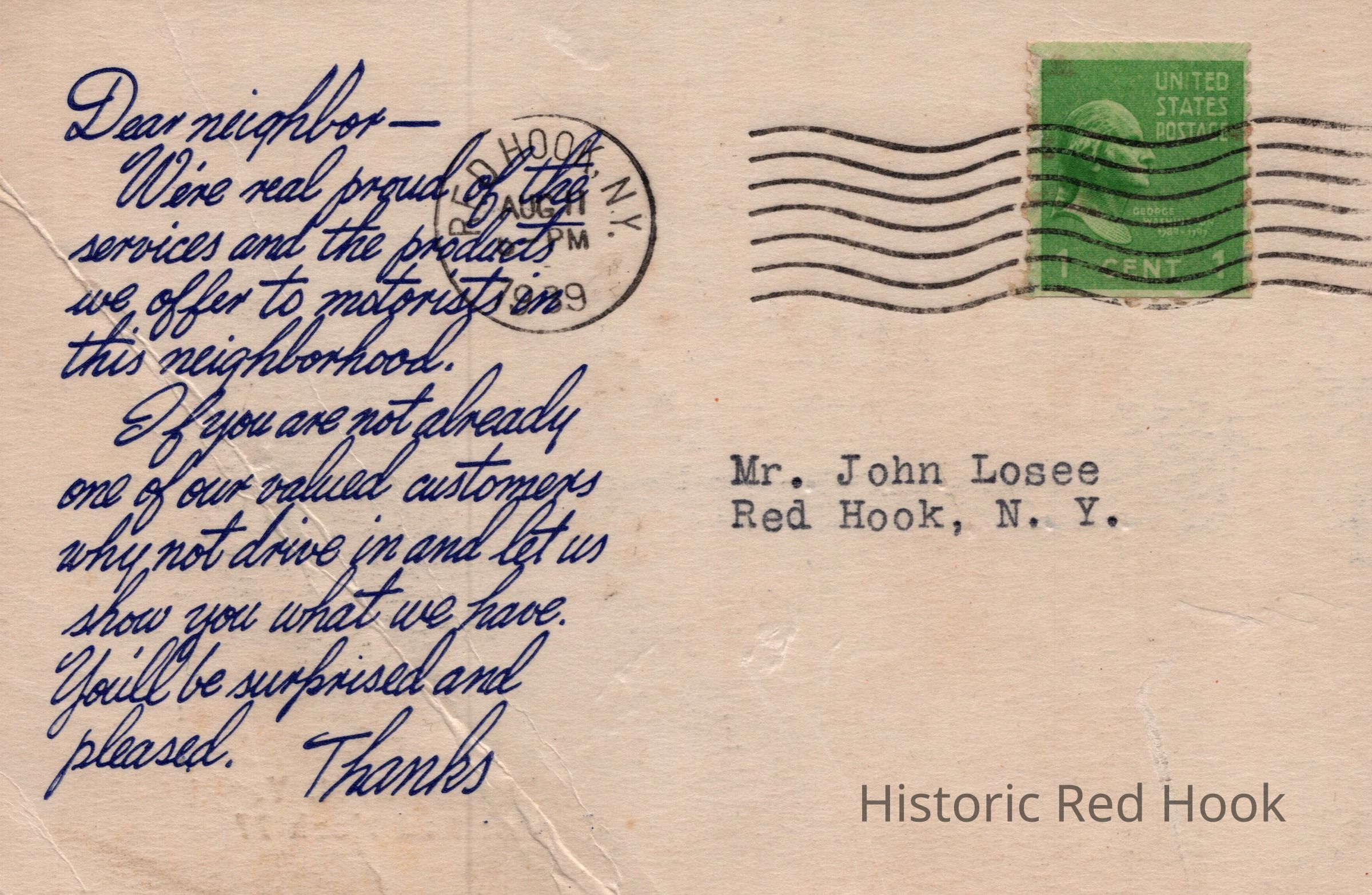 Advertising postcard from Triebel's Garage and Machine Shop, promoting a 'free Key Case for your car.' addressed to John Losee, postmark unclear (Aug 11, 1939?)Relationships