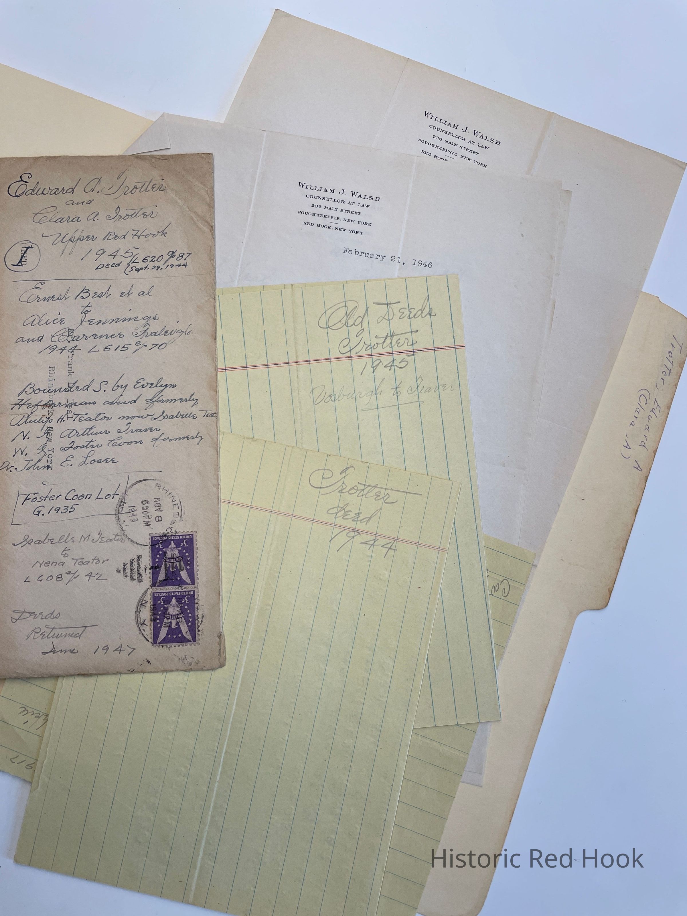 Deed: 620:87 Alice Jennings and Clarence Fraleigh to Edward A. Trotter & Clara A. Trotter 1944 1 ½ acre. Being a portion of premises described in: