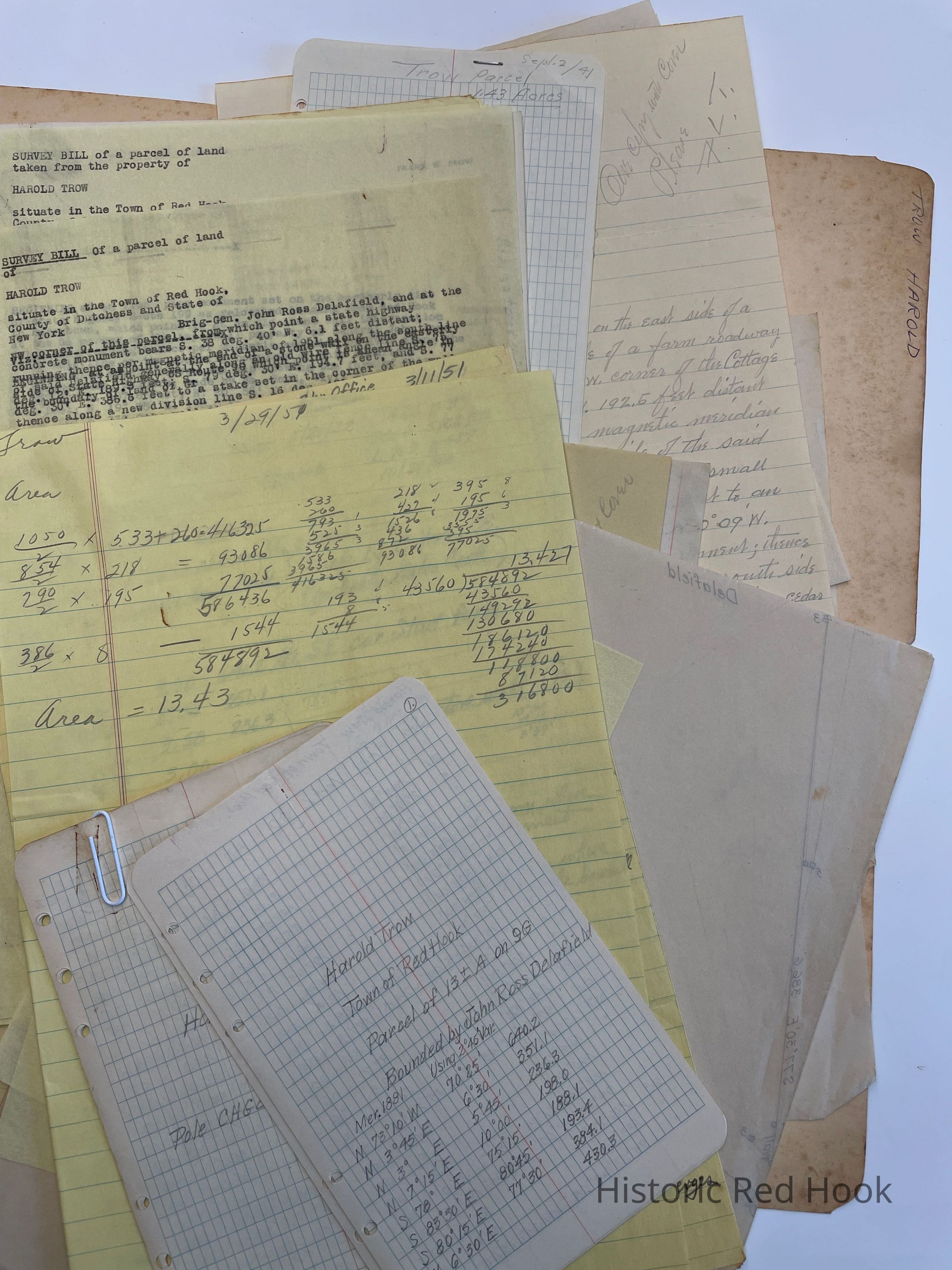 Survey: For Harold Trow May 1951 13.43 acres. Being portion of farm of: