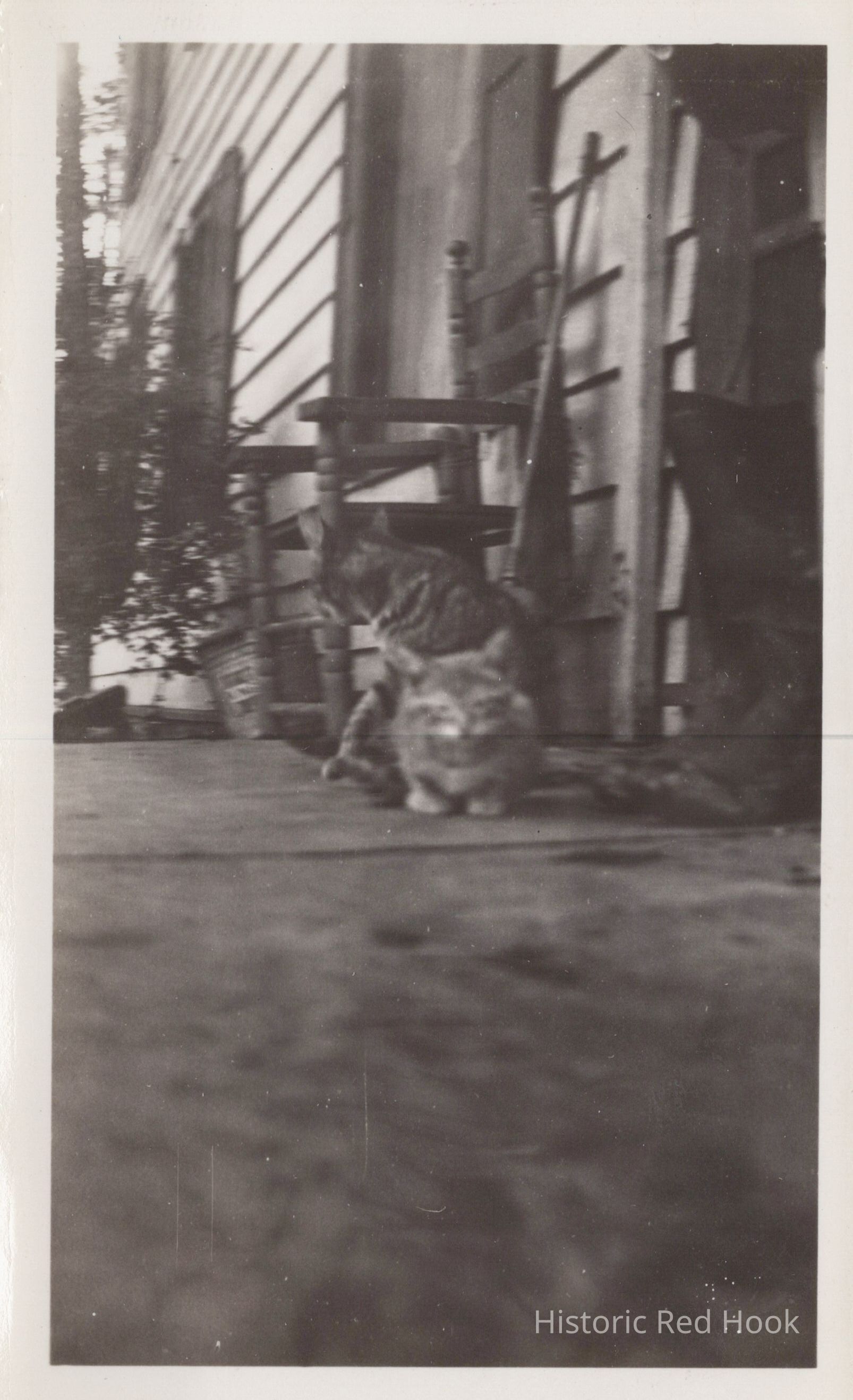 Photo of two cats on a porch.