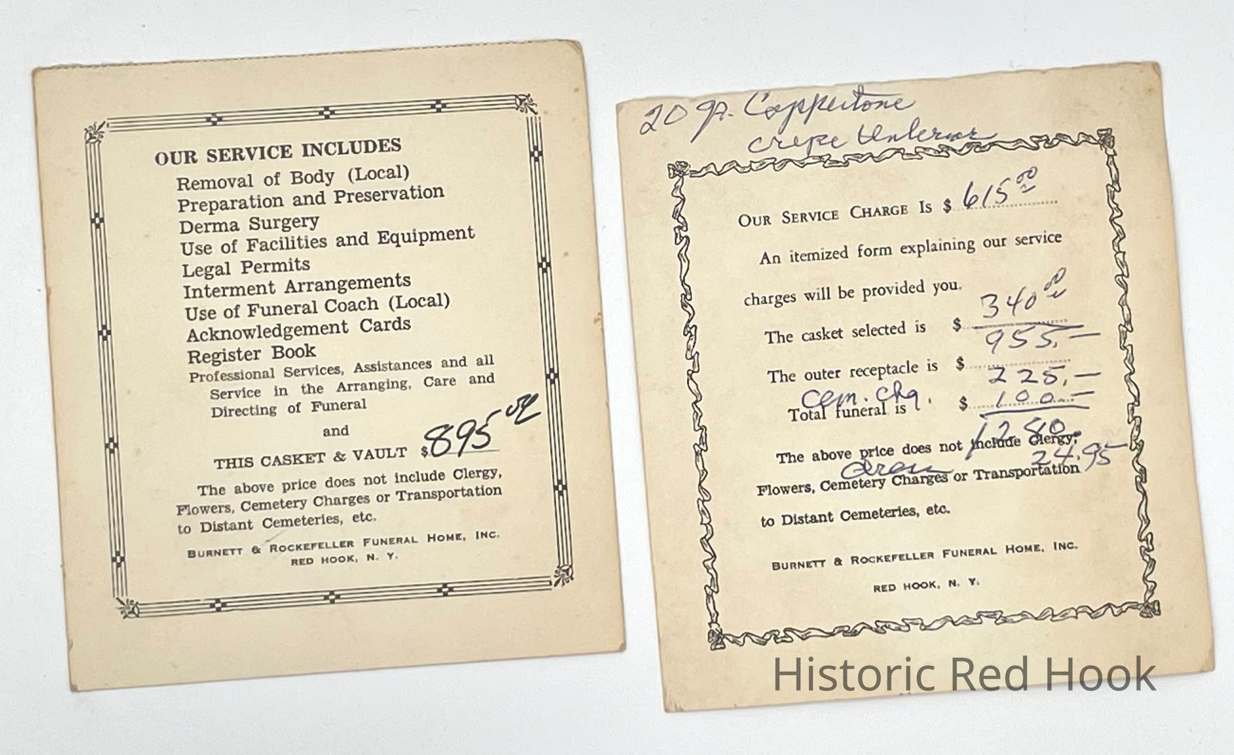 Two Funeral Home Receipts - RiddleburghEntry/Object ID