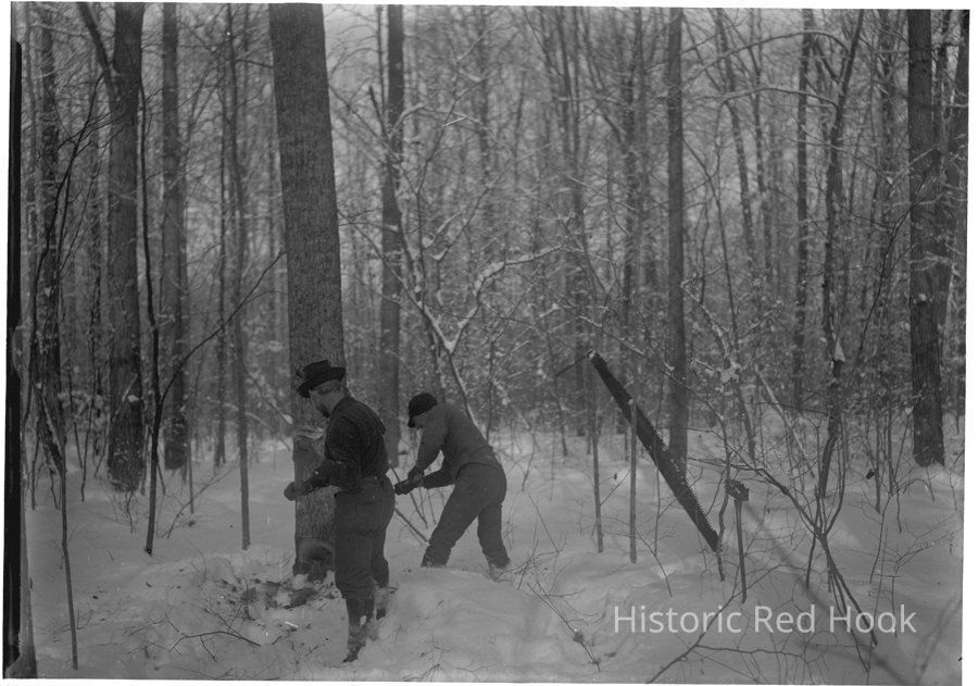 Two men cutting trees