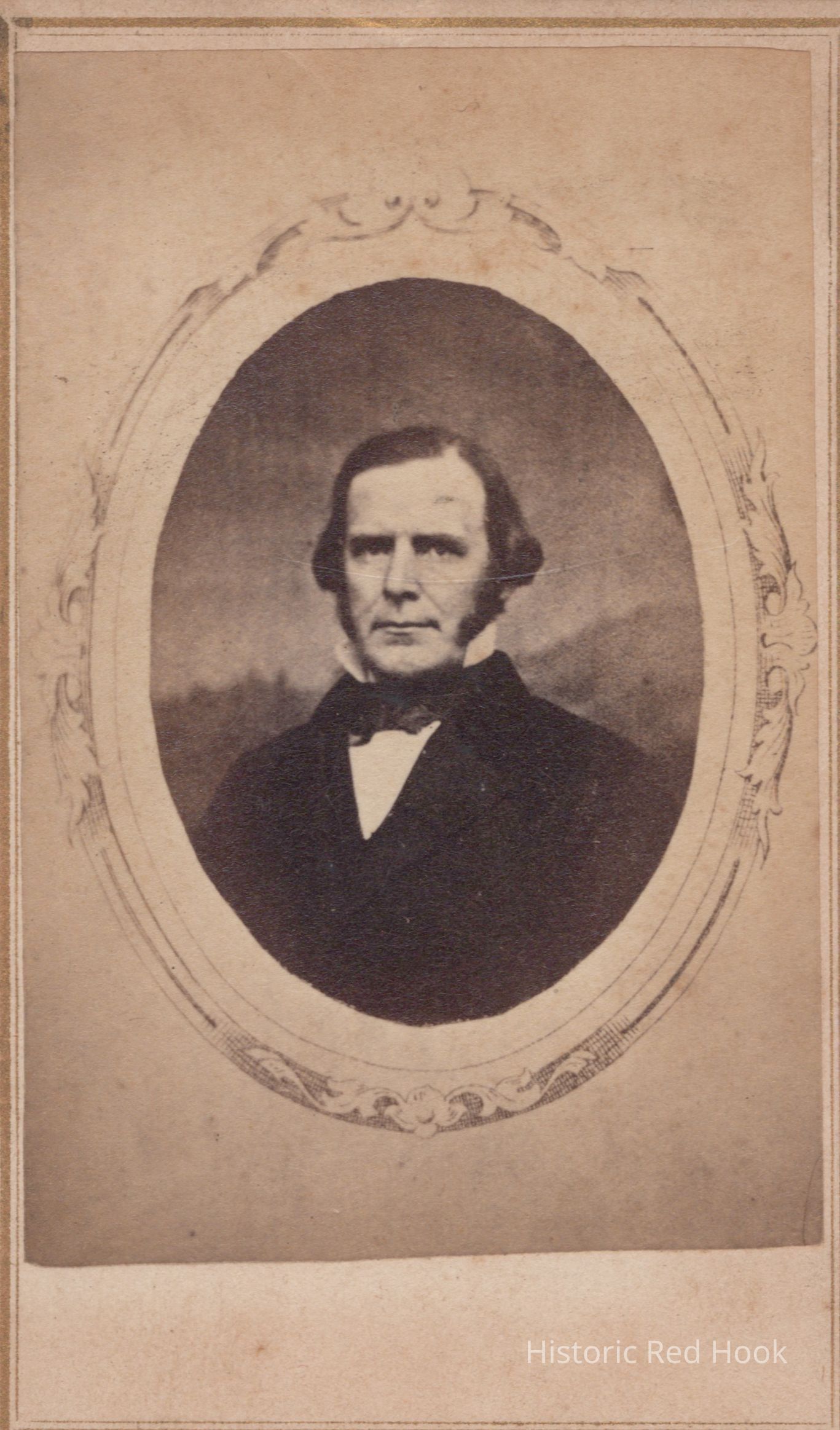 Formal portrait of an unidentified man taken at a photographic gallery at Montgomery Street, New York.