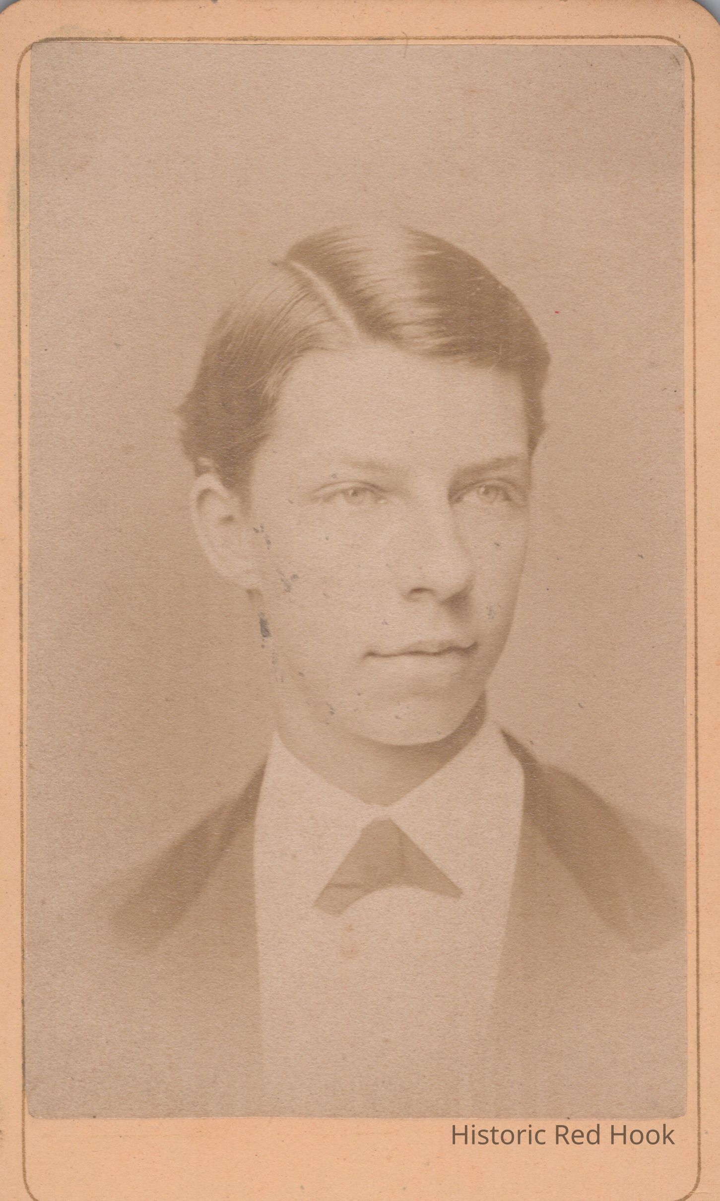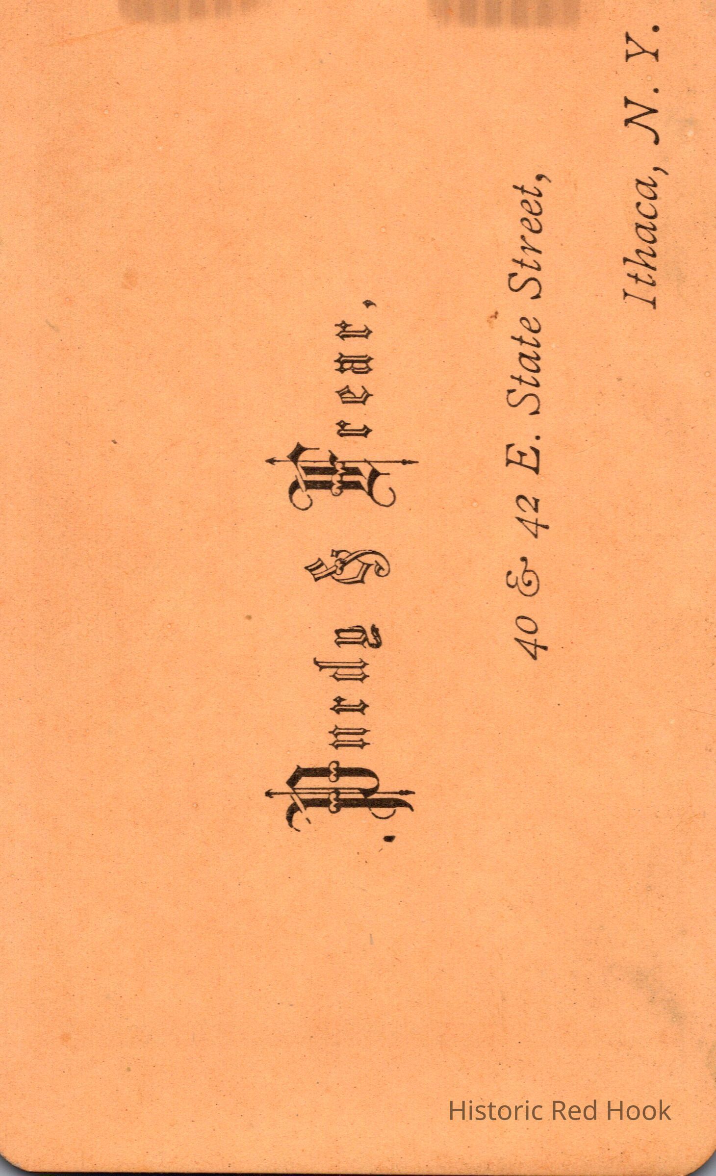 Formal portrait of an unidentified man taken at a photographic gallery in Ithaca, New York.