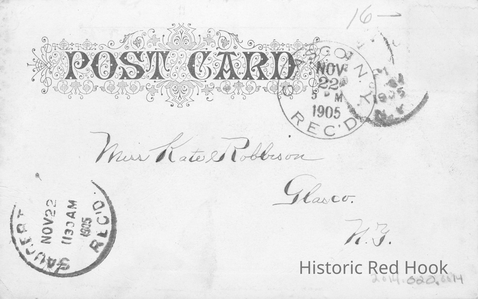 Probably Red Hook, Received Nov 22 1905 11:30 Am Saugerties, 5pm GlasgoAddressee
