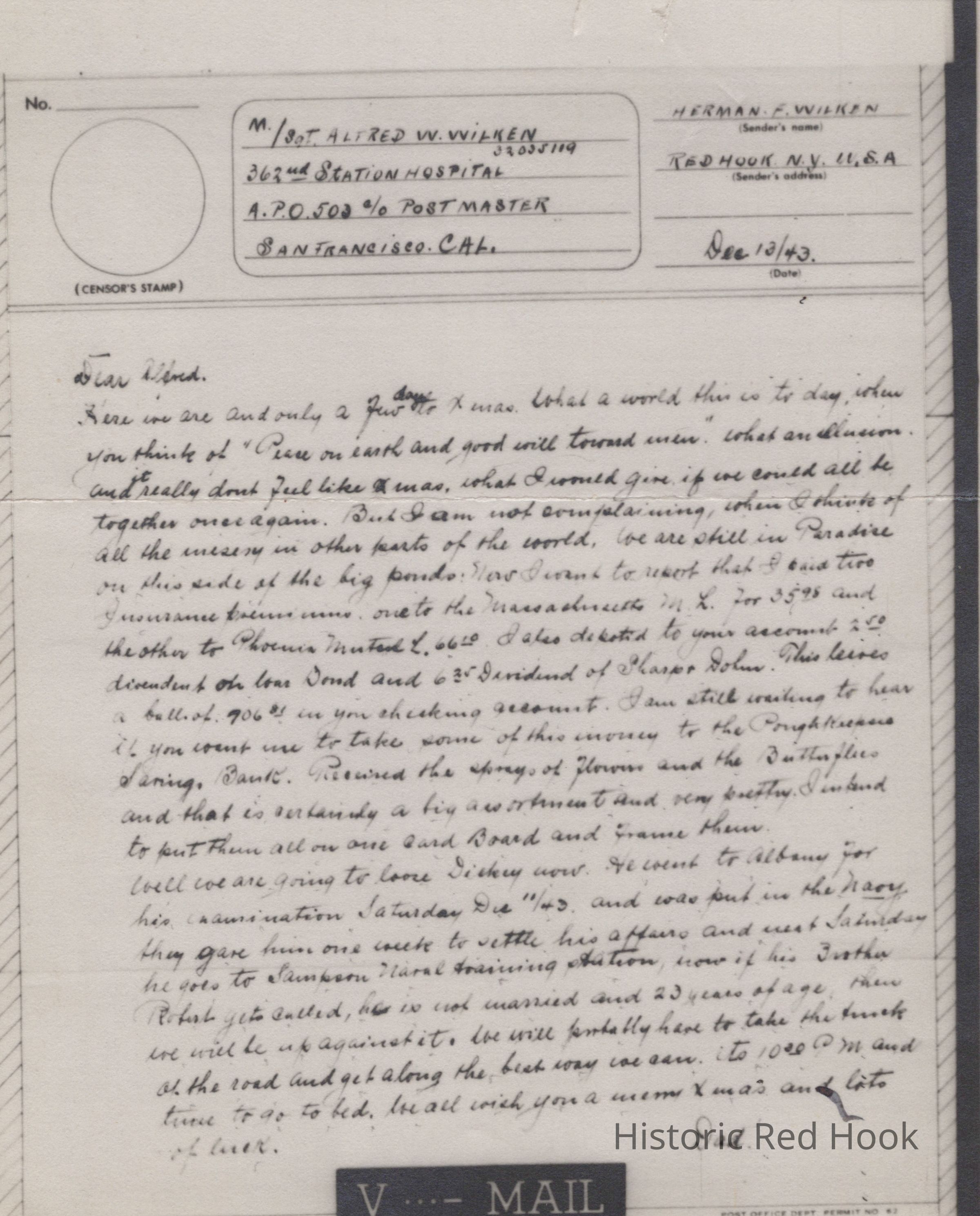 V-Mail Letter from Herman Wilken to Alfred W. Wilken, 1943Entry/Object ID