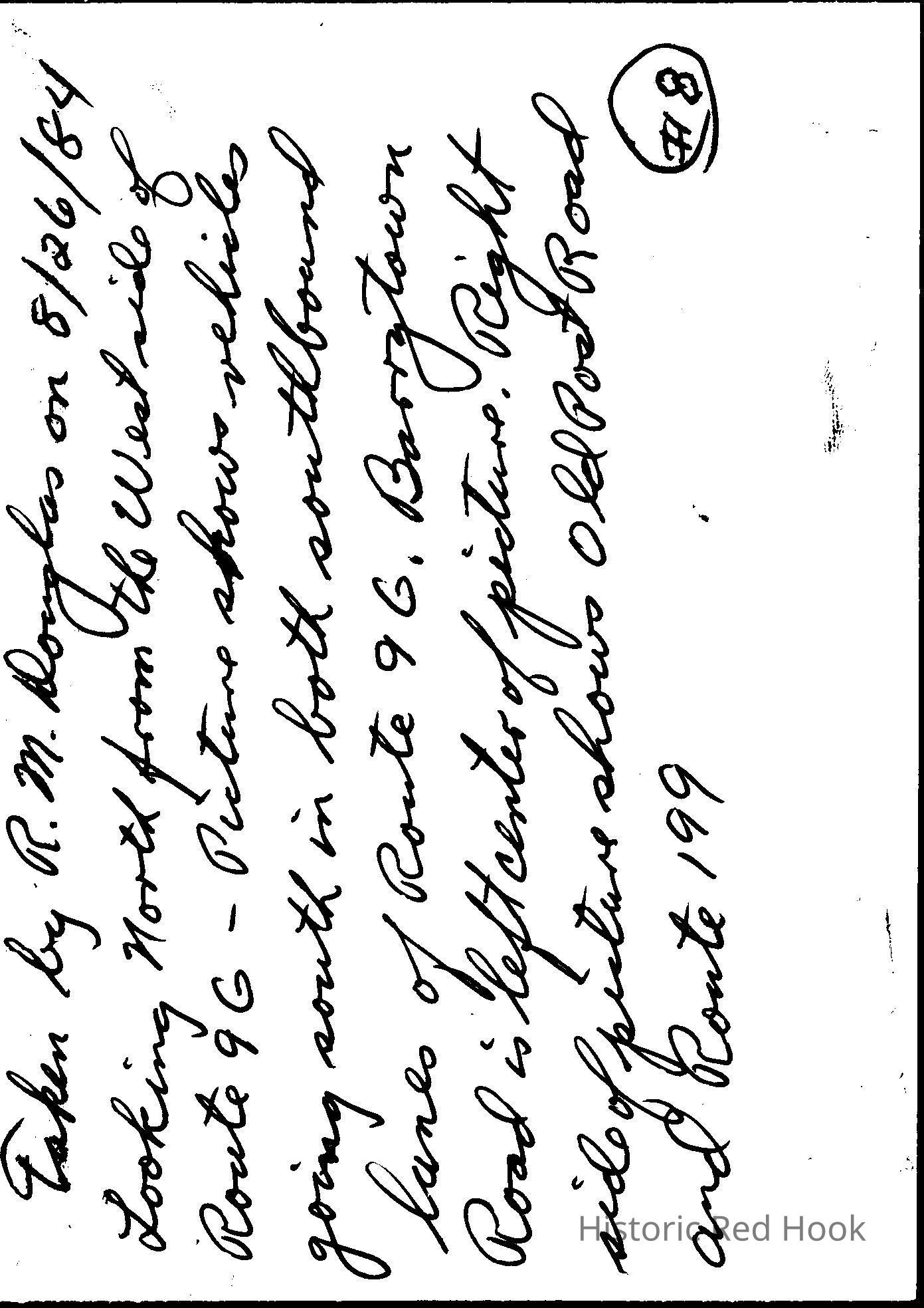 View looking north from the west side of Route 9G from in front of the Montgomery Place farmstand, taken August 26, 1988 by Ralph M. Douglas. Barrytown Road is left center. Right side shows Old Post Road and Route 199.Relationships