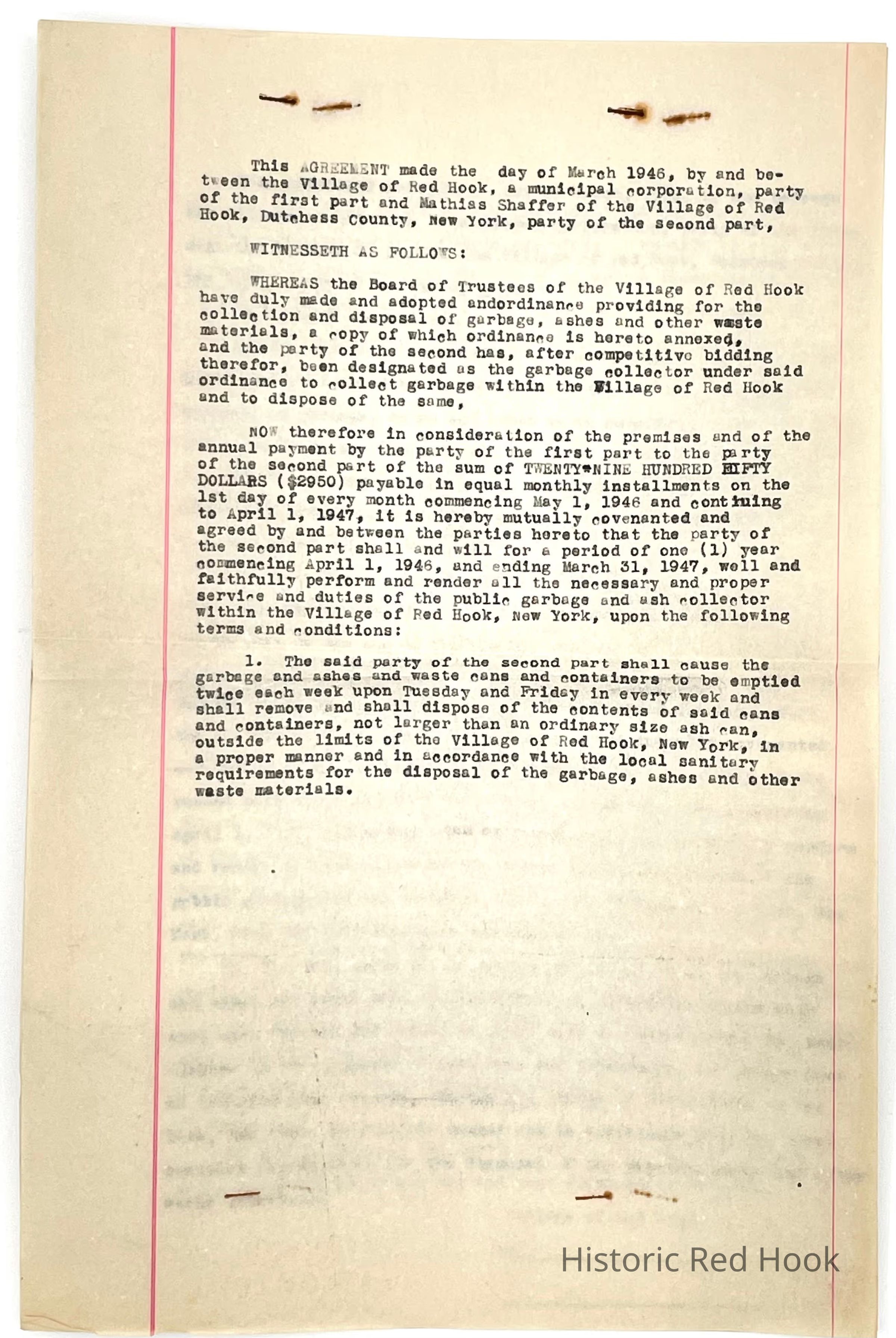 Contract between the Village and Mathiss Shaffer for Garbage collection and disposal