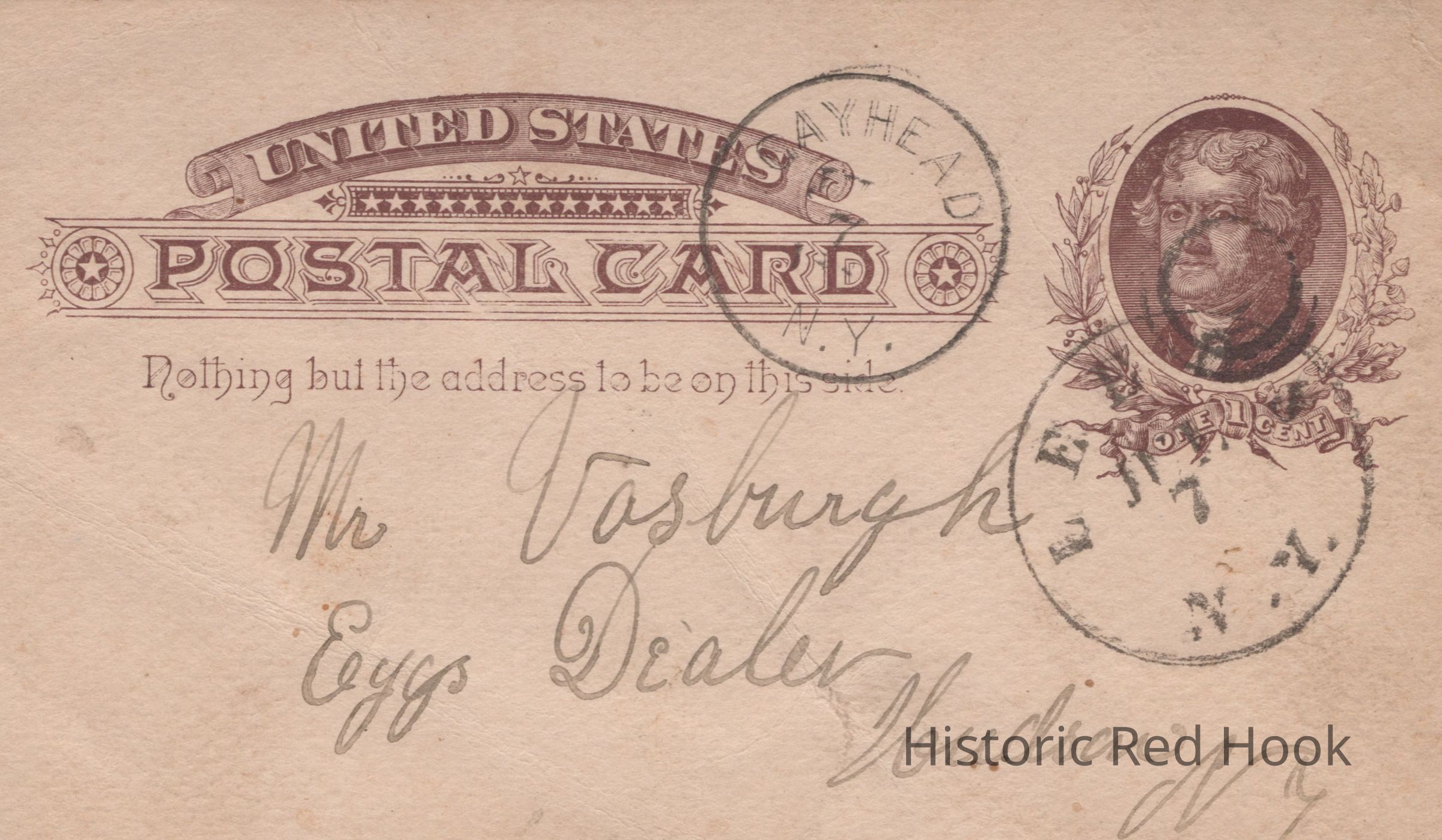 A postcard addressed to Vosburgh Eggs Dealer at Hudson, New York from M. Palmer regarding a request for the purchase of eggs.Collection